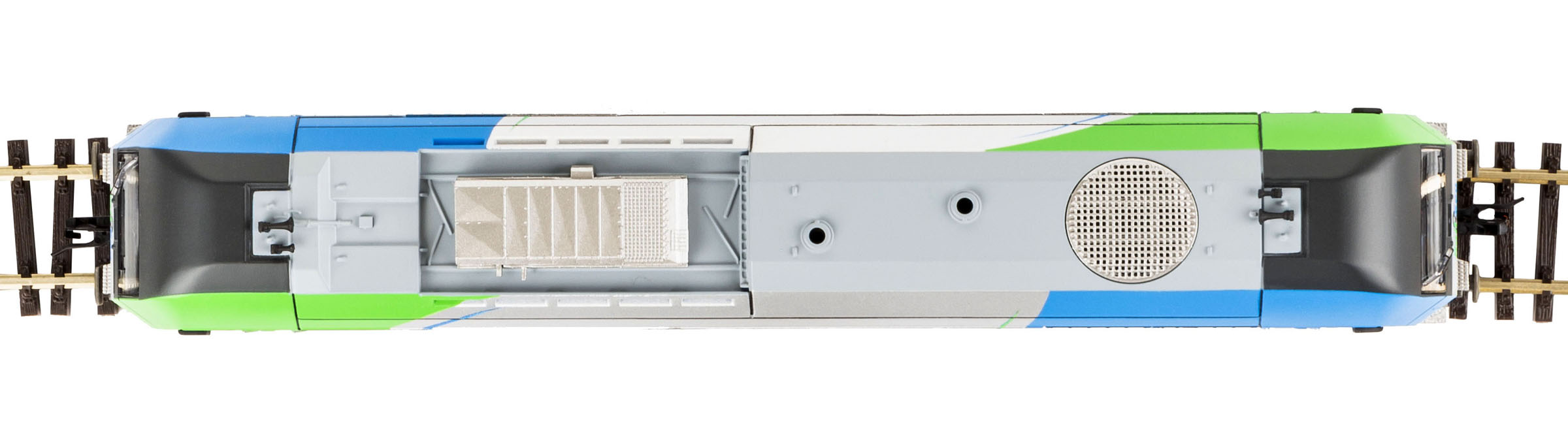 Popis   dieselová lokomotiva v modrém-zeleném barevném schematu „Rail & Sea“