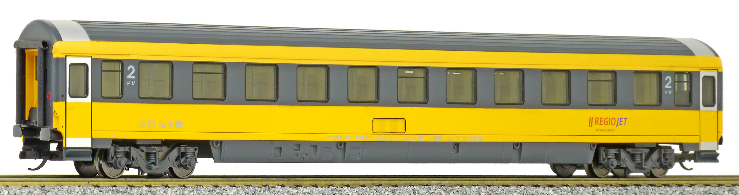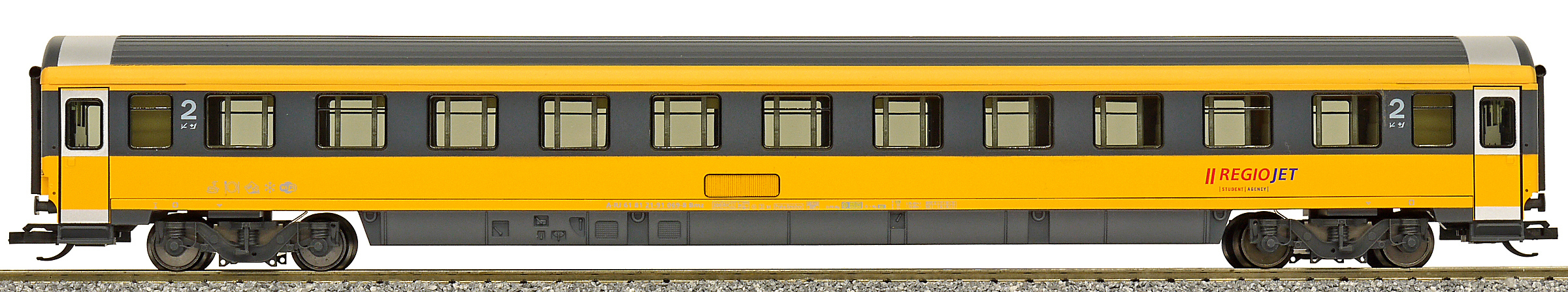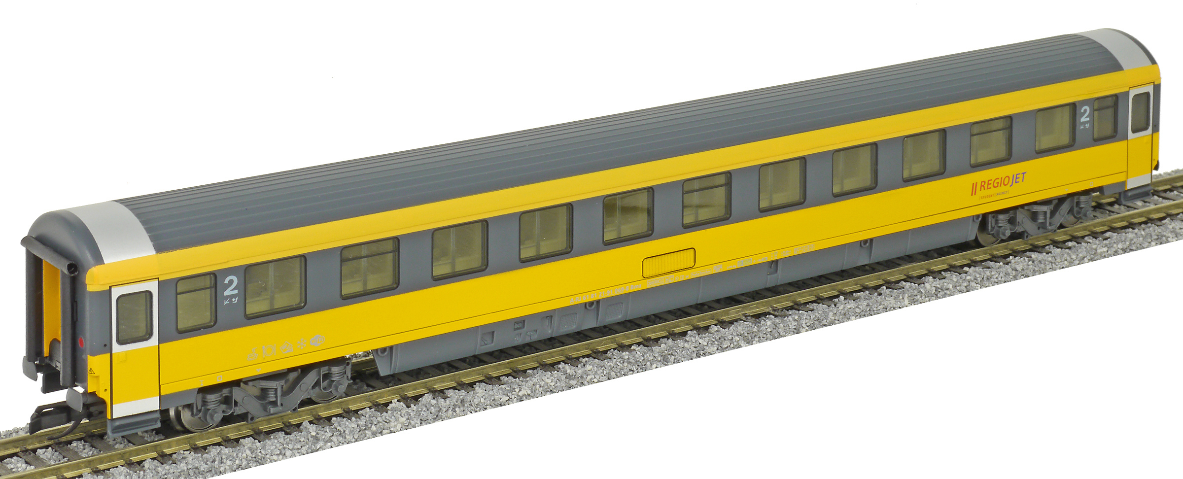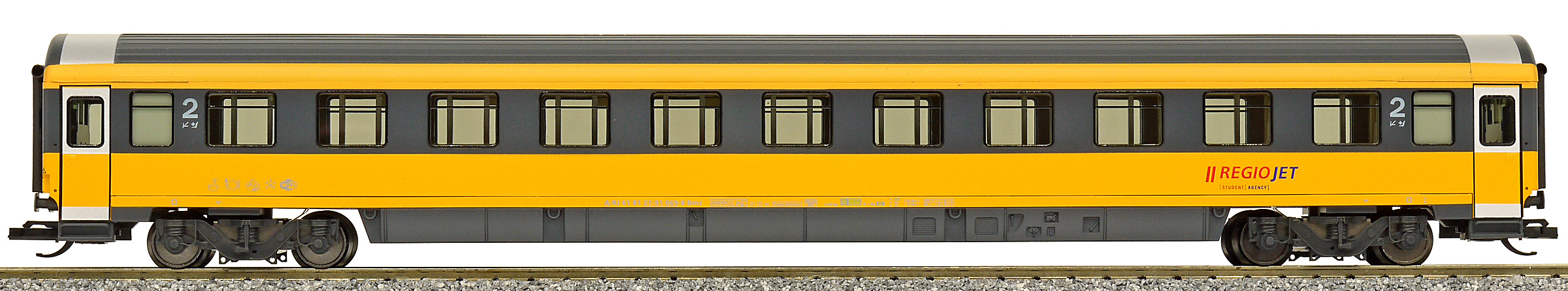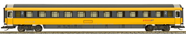 | rychlíkový vůz v barvách „RegioJet“ 2. tř. |