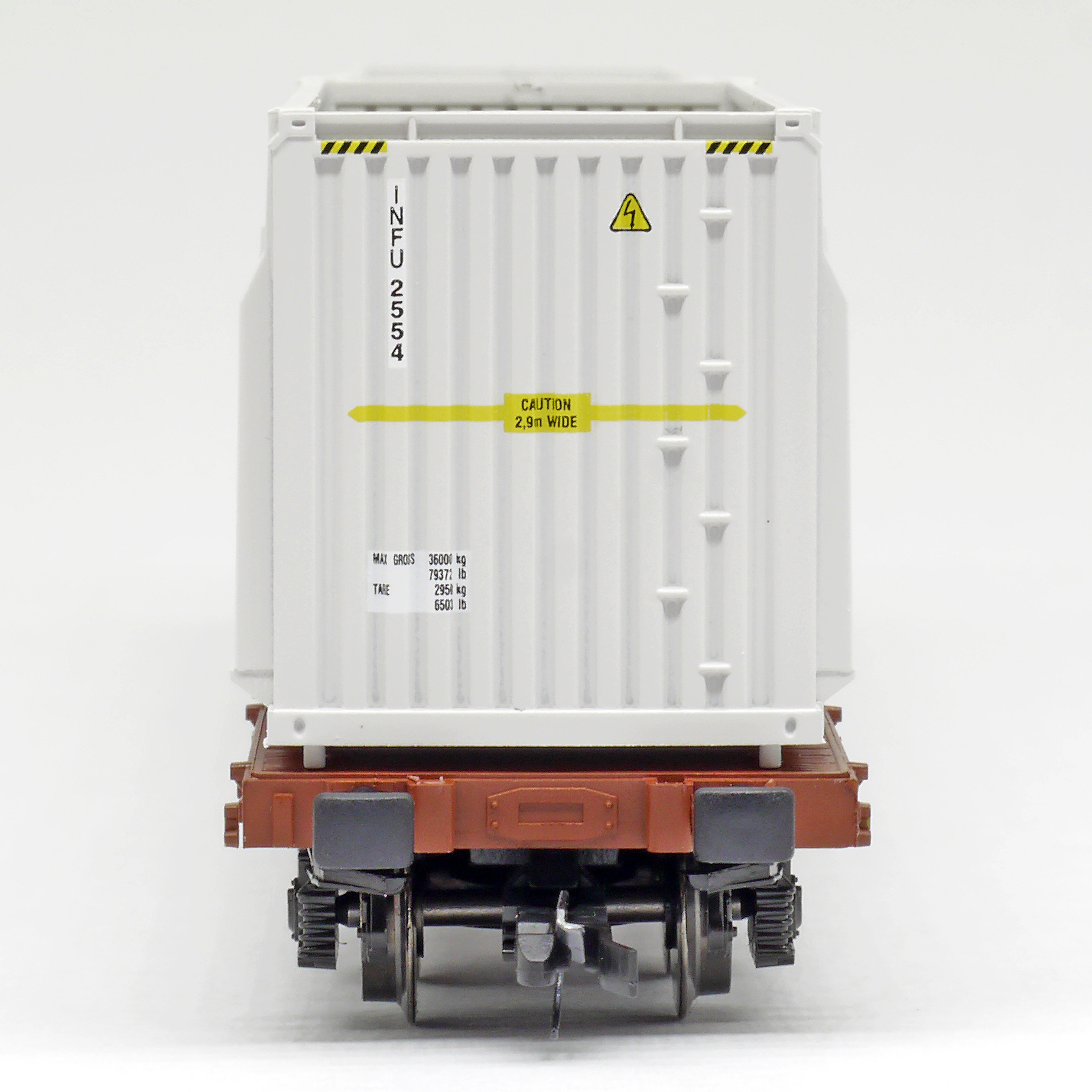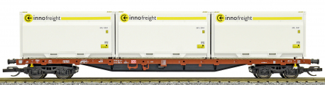 | plošinový nákladní vůz červenohnědý s kontejnery „Innofreight WoodTainer XXL“ |