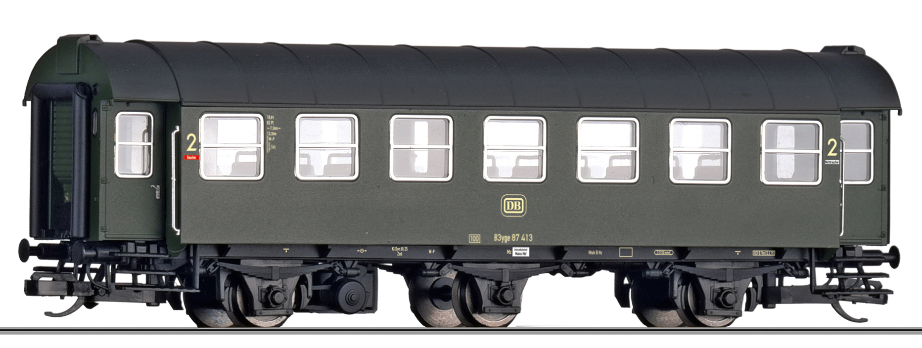 osobní vůz tmavě zelený s černou střechou 2. tř.