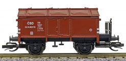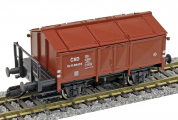 | nákladní vůz červenohnědý s víkovou střechou a s brzdařskou plošinou |