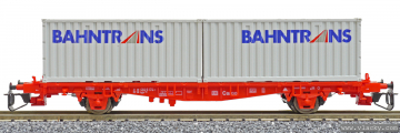 | plošinový nákladní vůz červený se dvěma kontejnery 20' „Bahntrans“ |