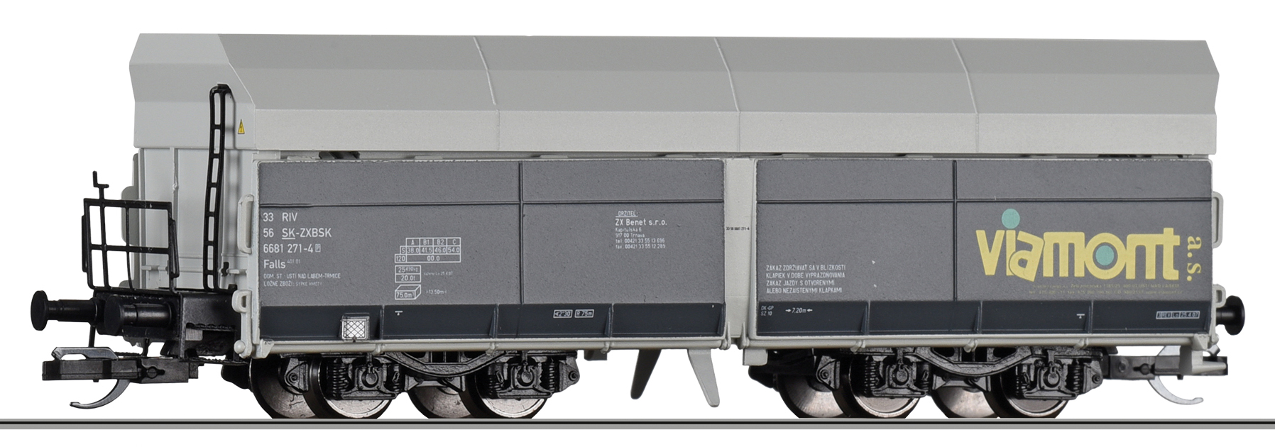 | nákladní samovýsypný vůz šedý s logem „viamont“ |