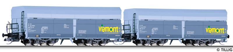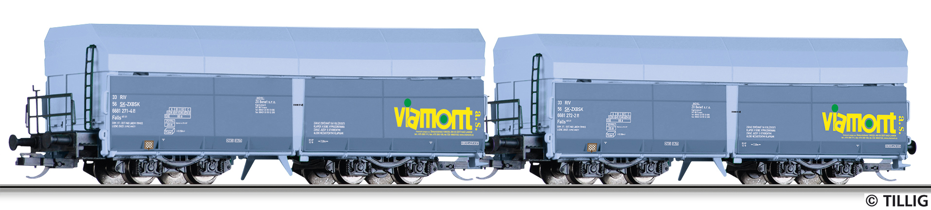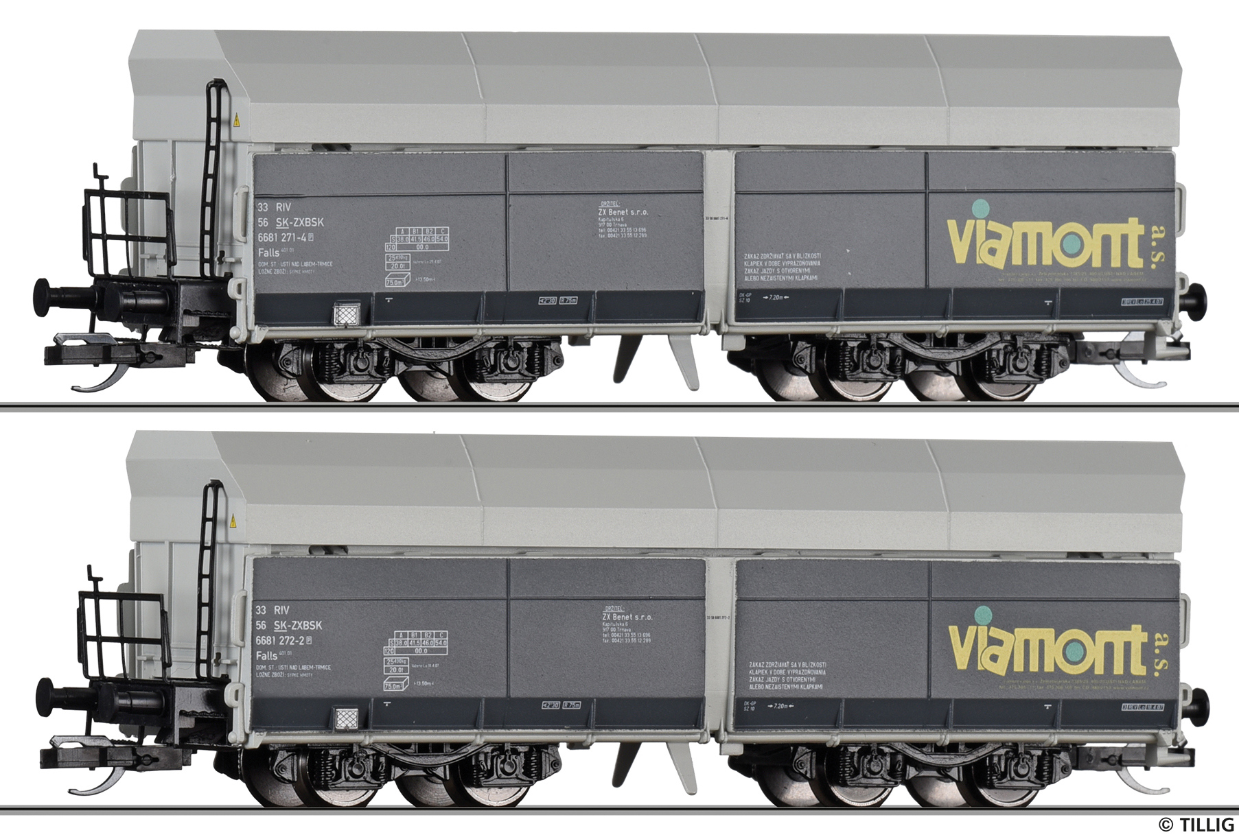 | set dvou nákladních samovýsypných vozů s logem „viamont“ |