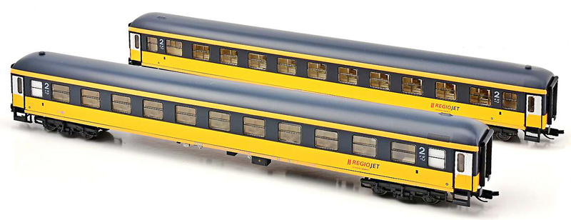 | set dvou lehátkových vozů v barevném schematu „RegioJet“ 2. tř. |