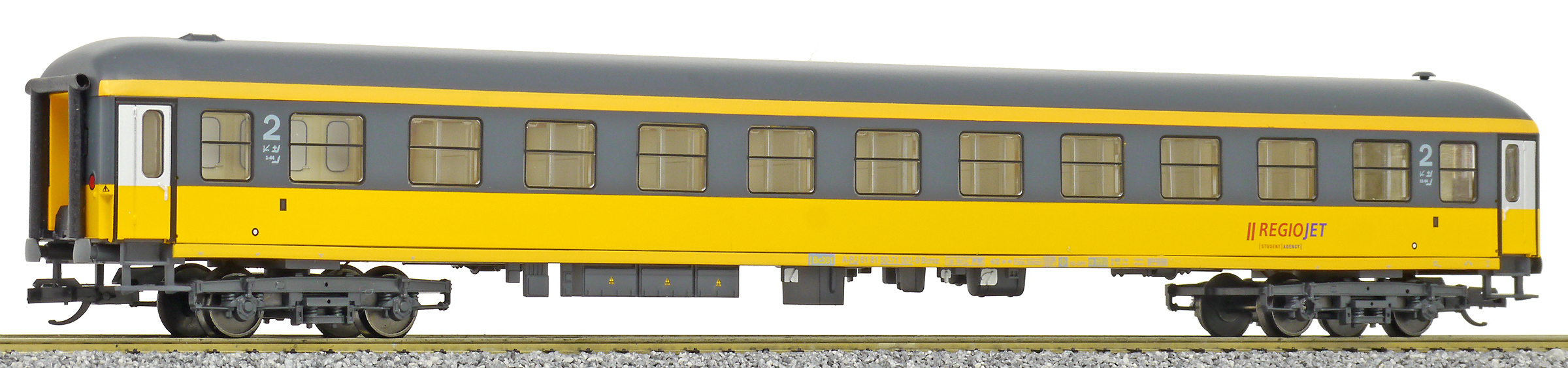 | lehátkový vůz v barevném schematu „RegioJet“ 2. tř. |