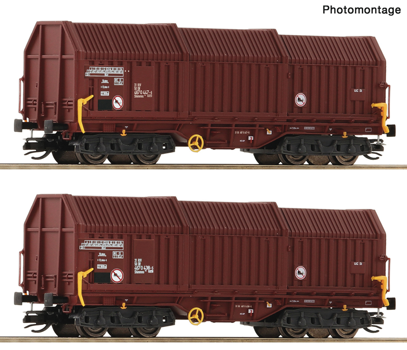 | set dvou hnědých nákladních vozů s posuvným teleskopickým zakrytím |