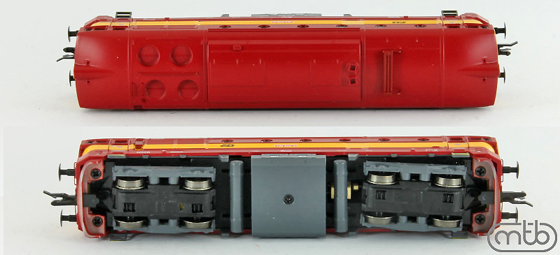 měřítko 1:120 - rozchod kolejí 12 mm osvětlení - 3 reflektory vpředu, 2 světla vzadu, přepínatelné podle směru jízdy 4 hnané nápravy 1 bandážovaná náprava kinematika krátkého spřáhla (KKK) podle normy NEM 358 digitální rozhraní podle NEM 658 s konektorem PluX16 setrvačník 137 mm - celková délka modelu přes nárazníky 4 - celkový počet náprav nebo rozložení náprav
