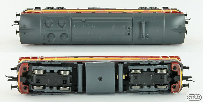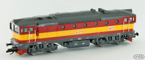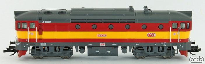 Popis   dieselová lokomotiva červená se žlutým pásem, tmavě šedá střecha a rám