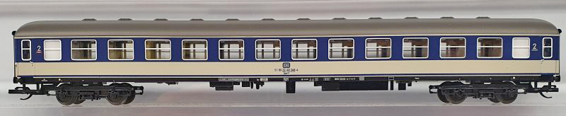 | rychlíkový vůz zelený-světle šedý s šedou střechou 2. tř. |