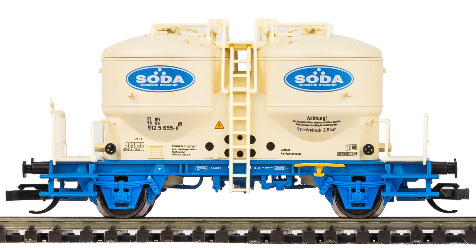 Popis   nákladní samovýsypný vůz krémový-modrý „SODA“