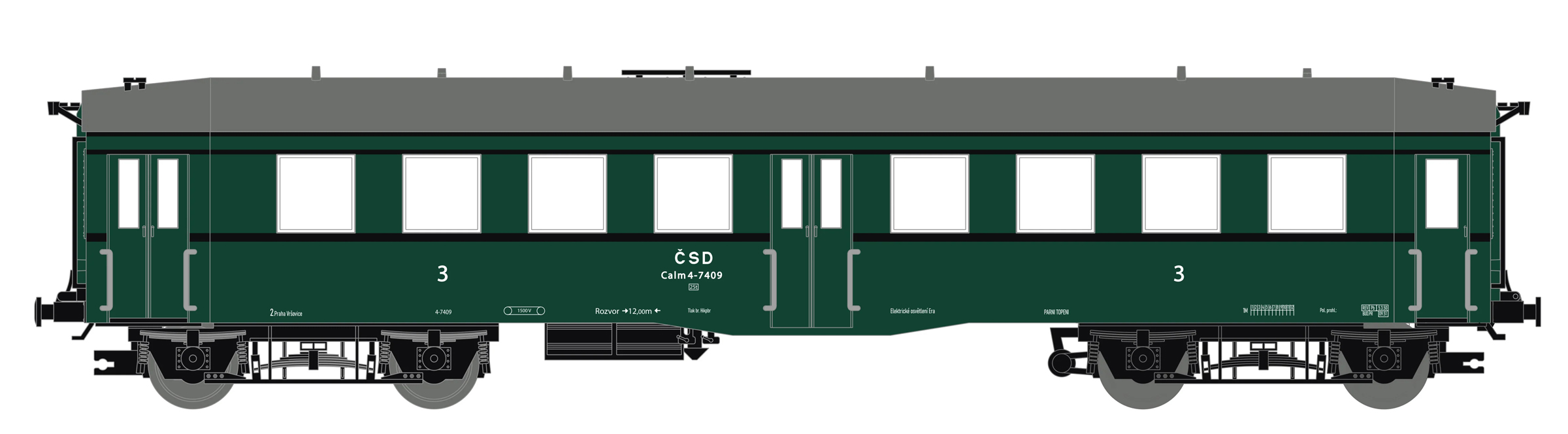 Popis   osobní vůz zelený s šedou střechou 3. tř.