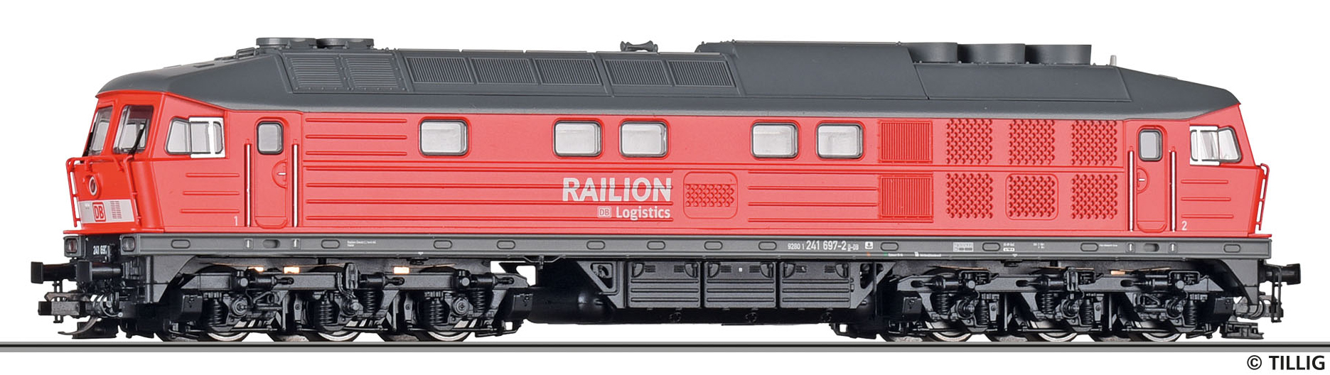 Popis   dieselová lokomotiva červená s šedou střechou a černým pojezdem