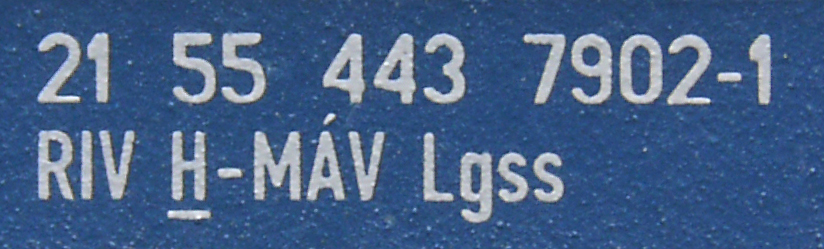 | • 21 55 443 7902-1 | → | nákladní, nezávislé nápravy, pevný rozchod, ve vlastnictví železniční správy, RIV, PPV |