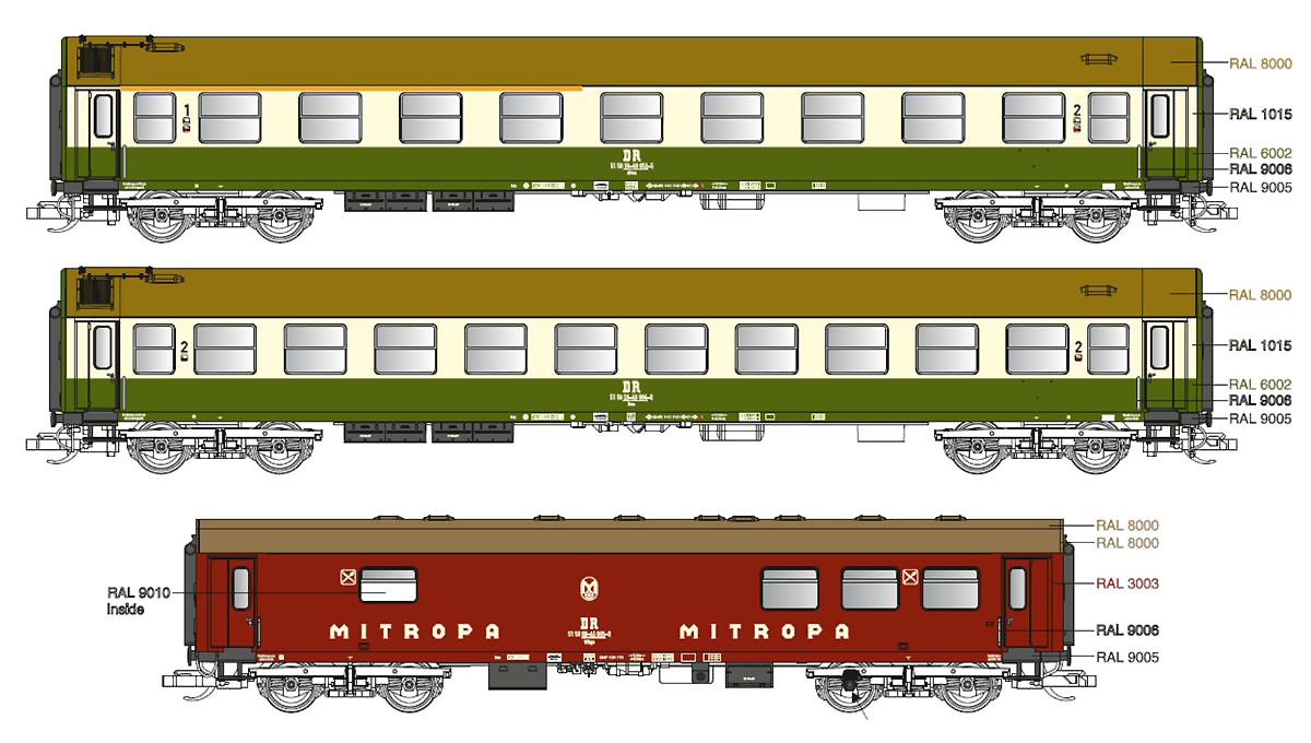 | rychlíkový vůz zelený-slonová kost s rezavou střechou 1./2. tř. |