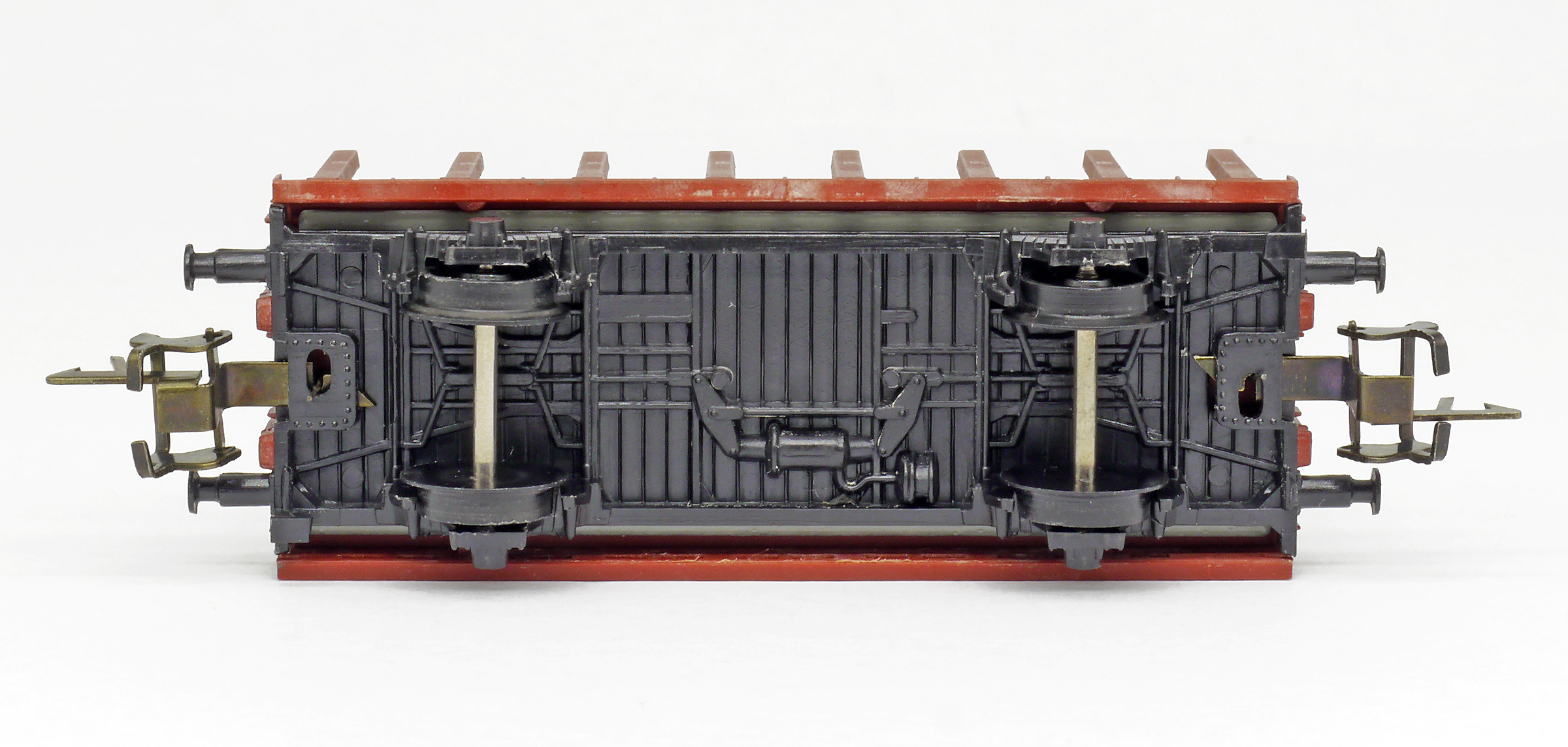 nízkostěnný nákladní vůz červenohnědý s klanicemi