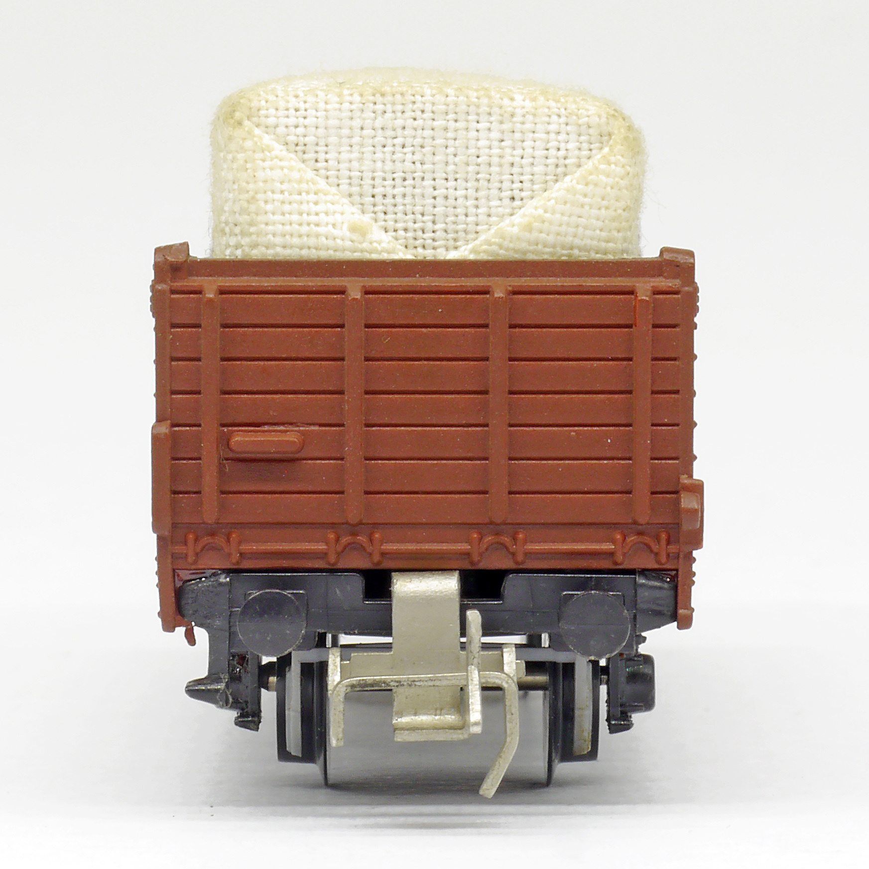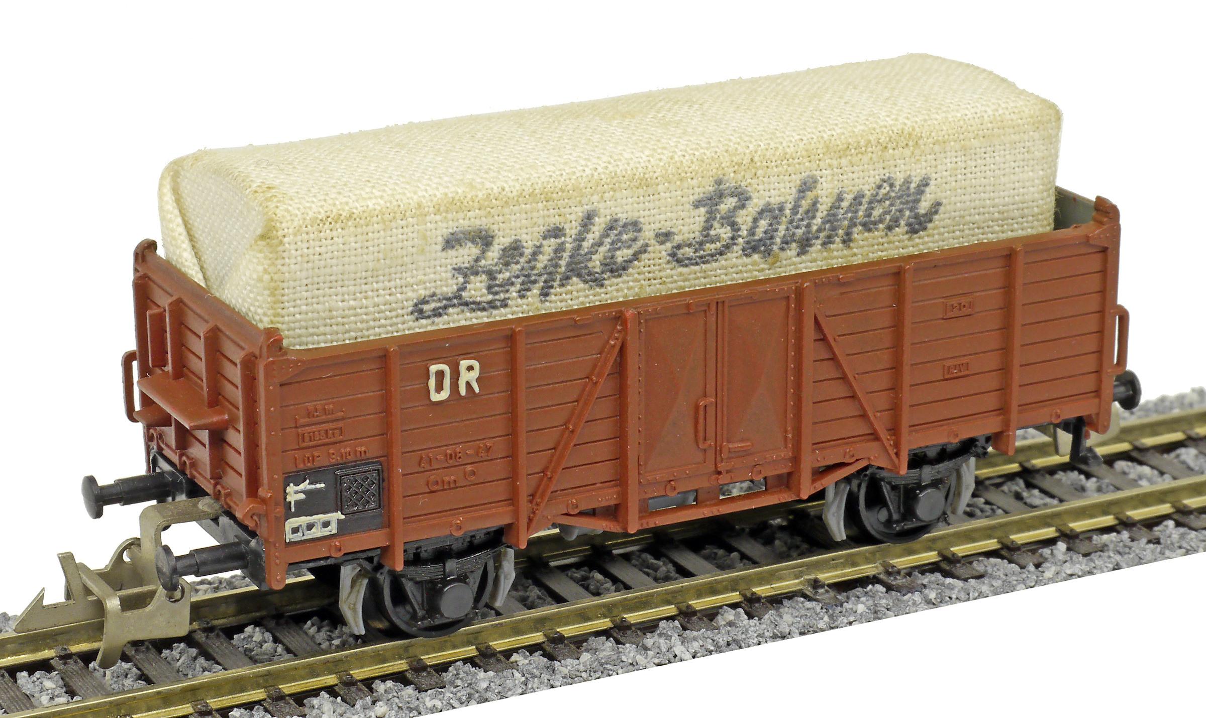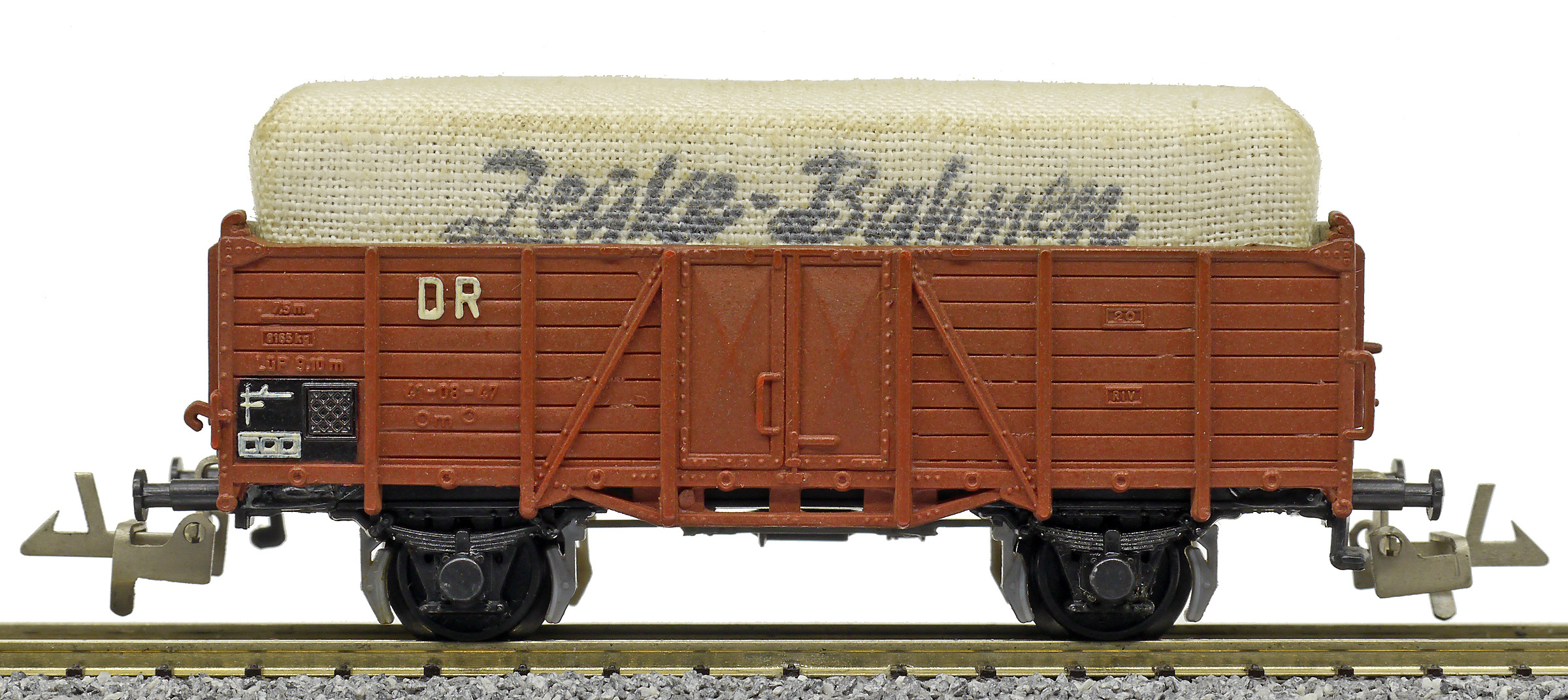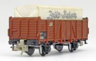 otevřený nákladní vůz červenohnědý s nákladem krytým plachtou „Zeuke-Bahnen“