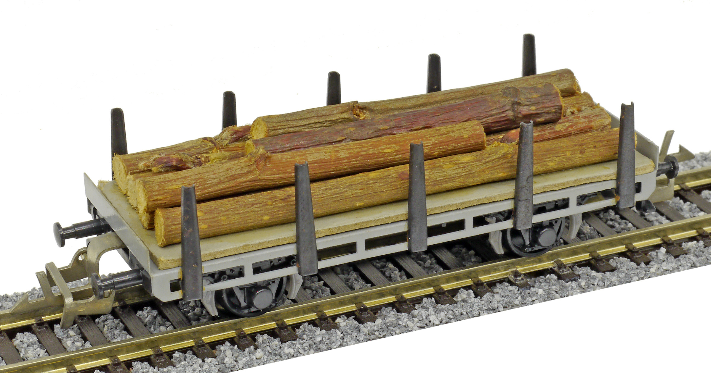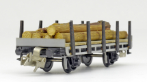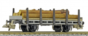 | plošinový nákladní vůz s klanicemi s nákladem kulatiny, bez popisu |