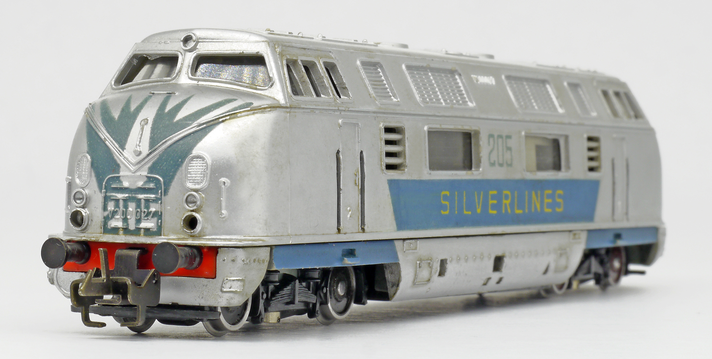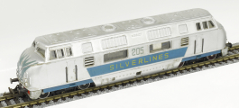 | dieselová lokomotiva v barevném schematu „SILVERLINES“ |