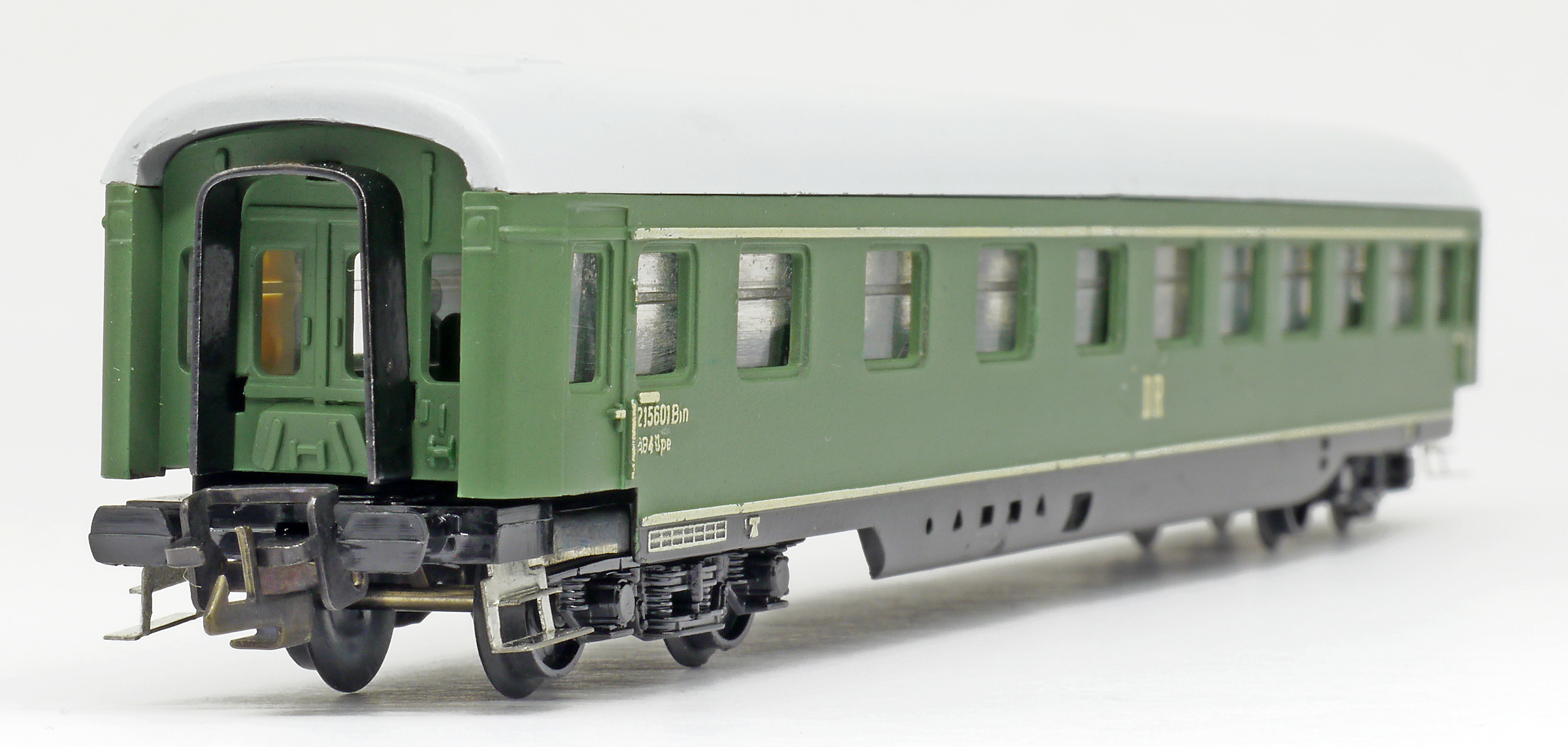 | rychlíkový vůz zelený s šedou střechou 1./2. tř. |