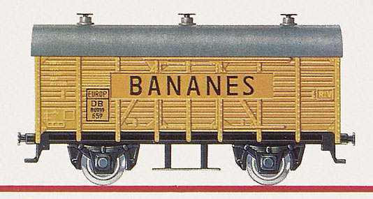 krytý nákladní vůz žlutý s tmavě šedou střechou „BANANES“
