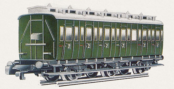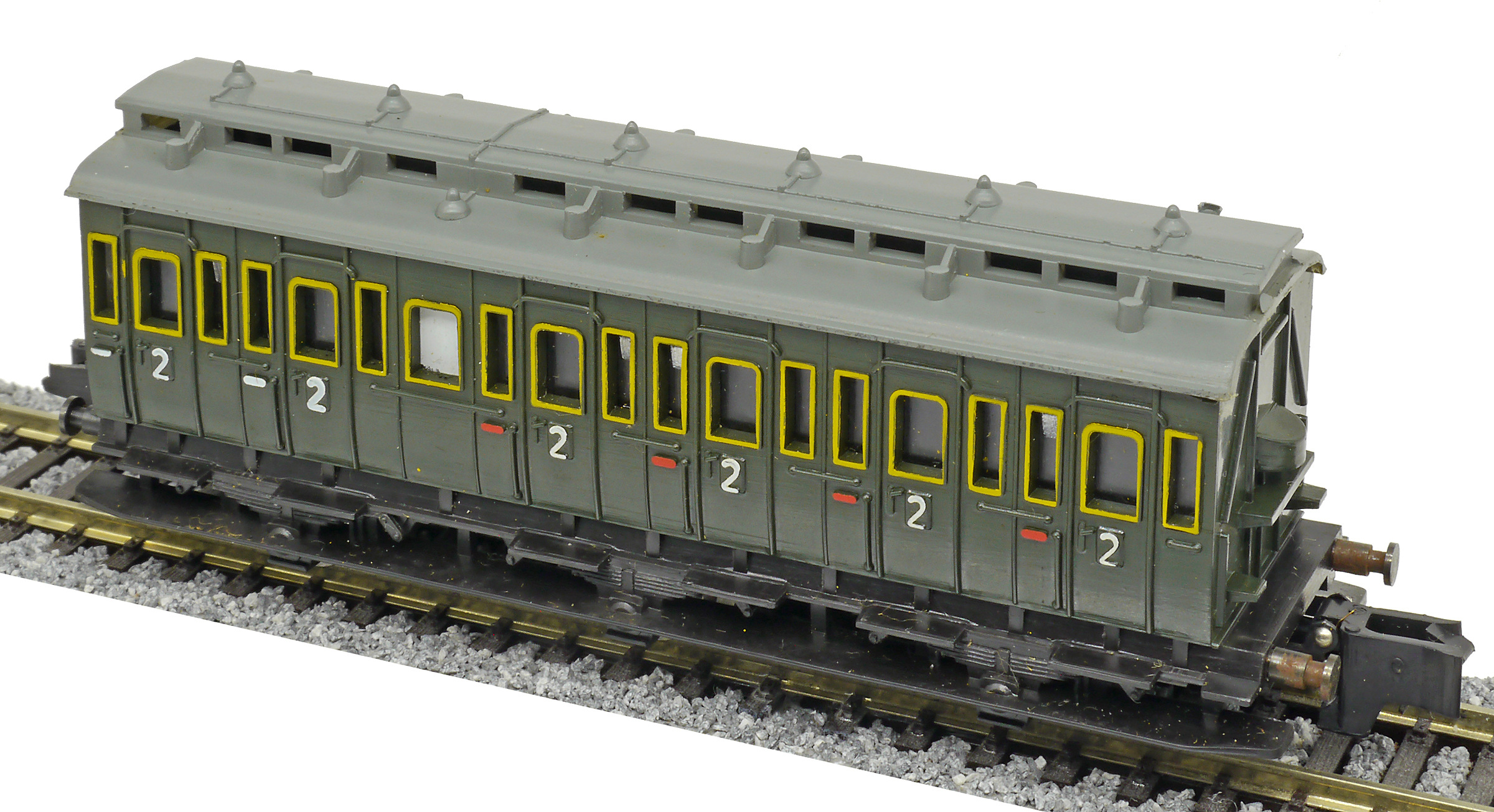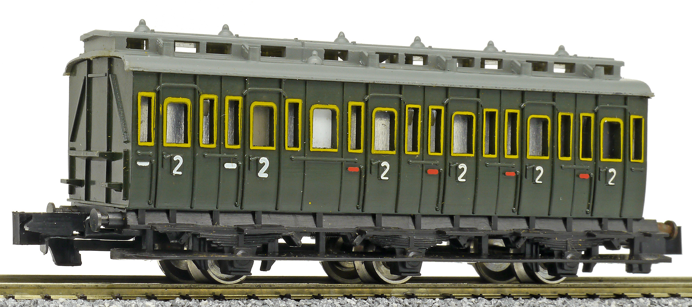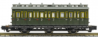 oddílový osobní vůz zelený s šedou střechou 2. tř.