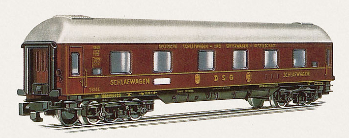 lůžkový vůz vínově červený s šedou střechou „DSG“