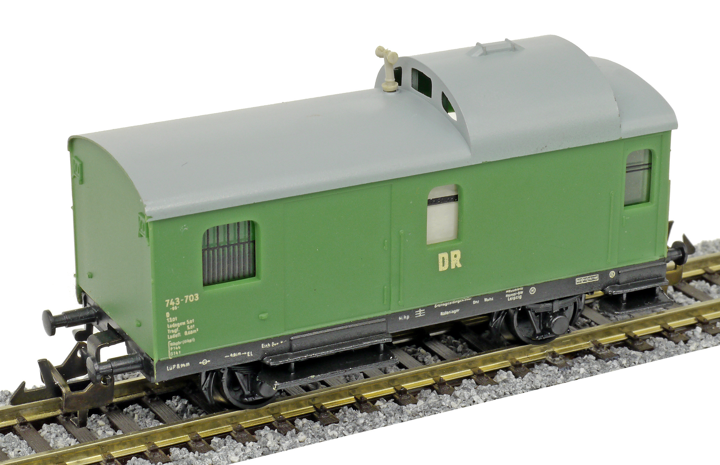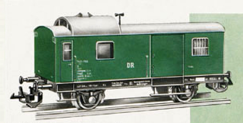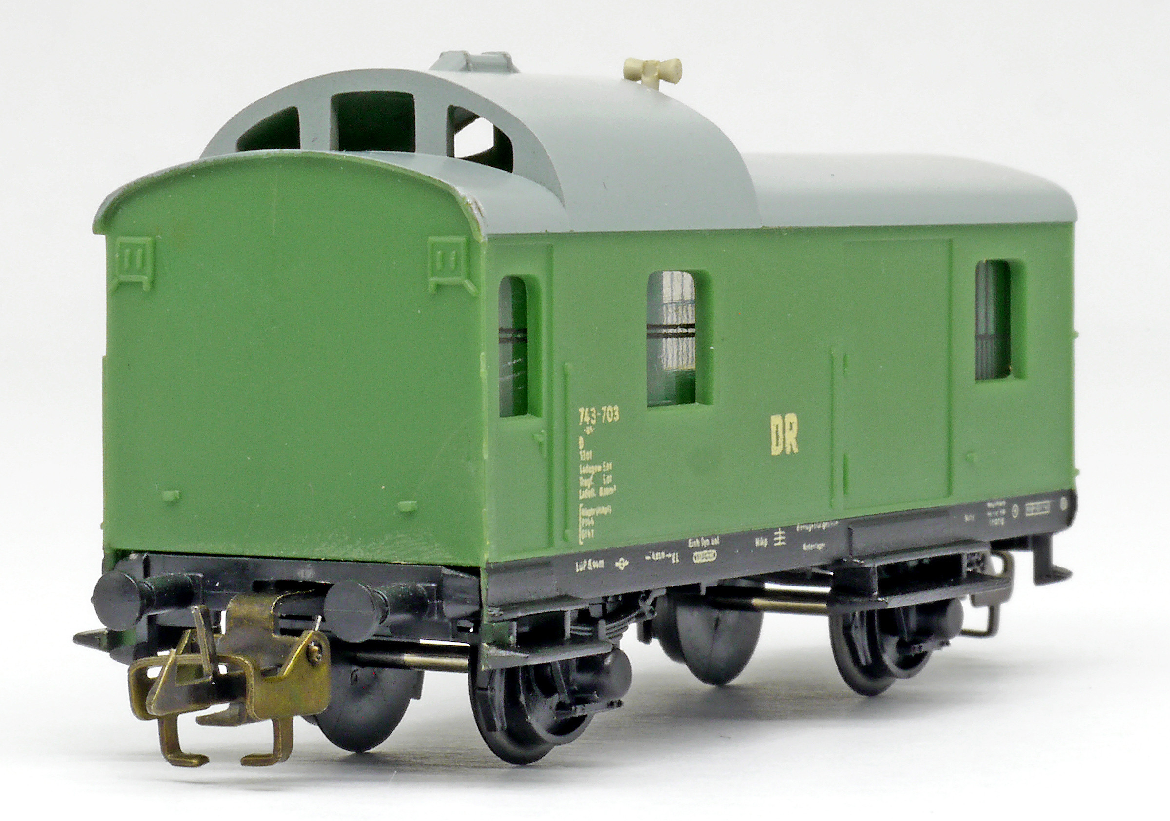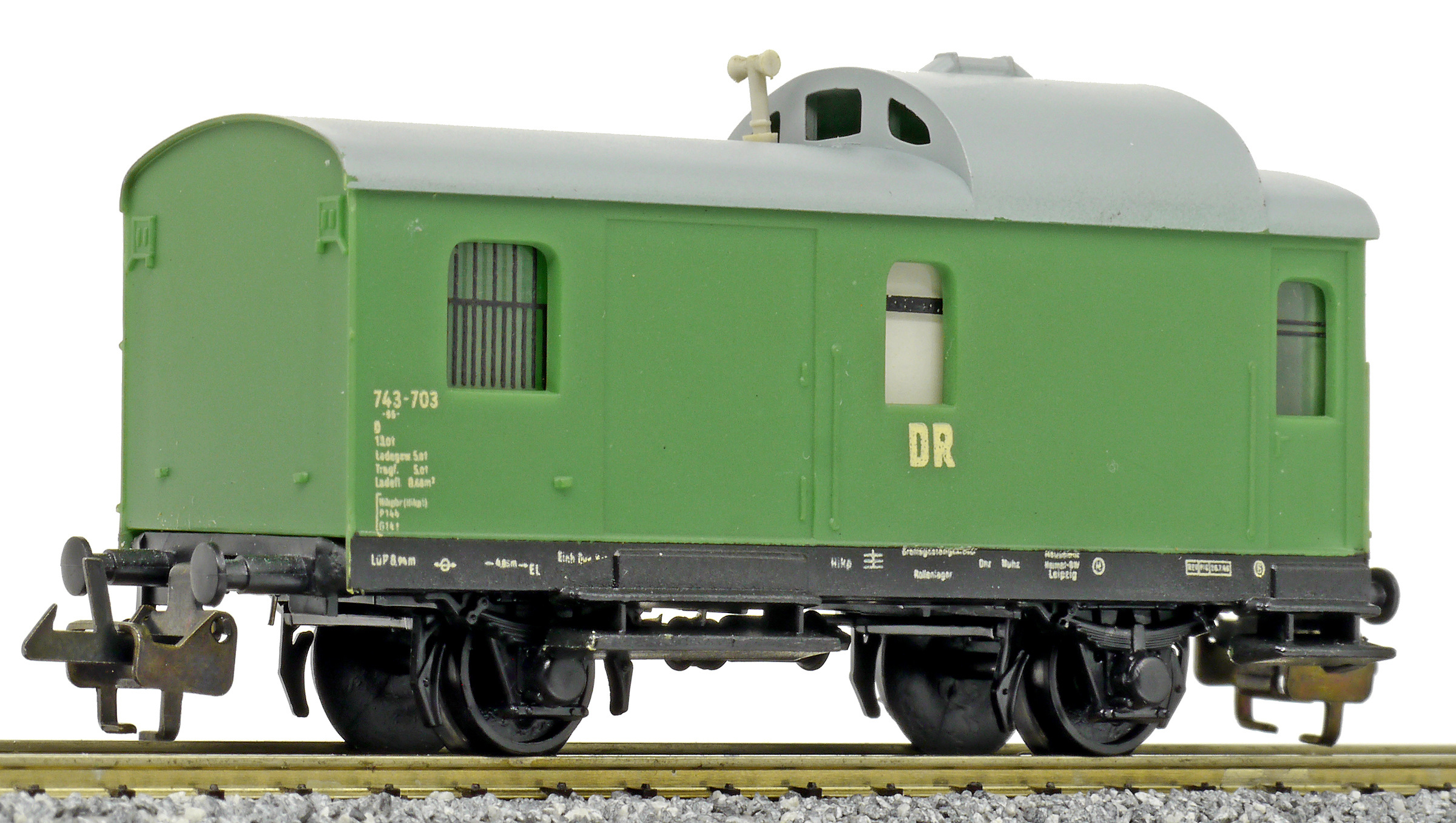 | služební vůz pro nákladní vlaky zelený s šedou střechou |