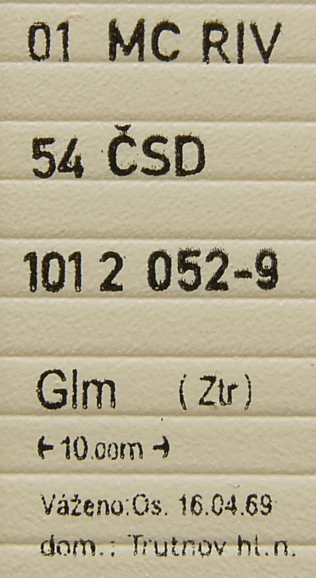 | • 01 54 101 2 052-9 | → | ČSD - Československé státní dráhy |