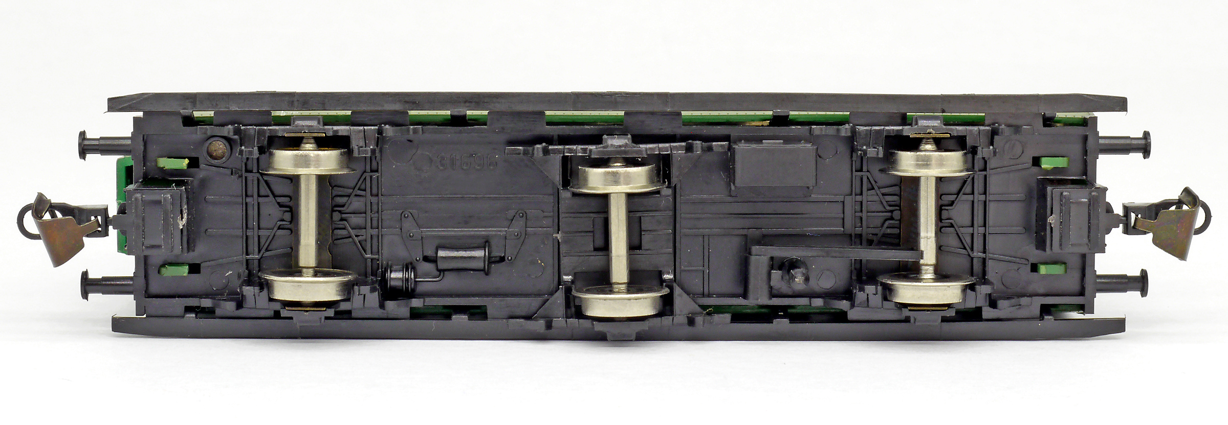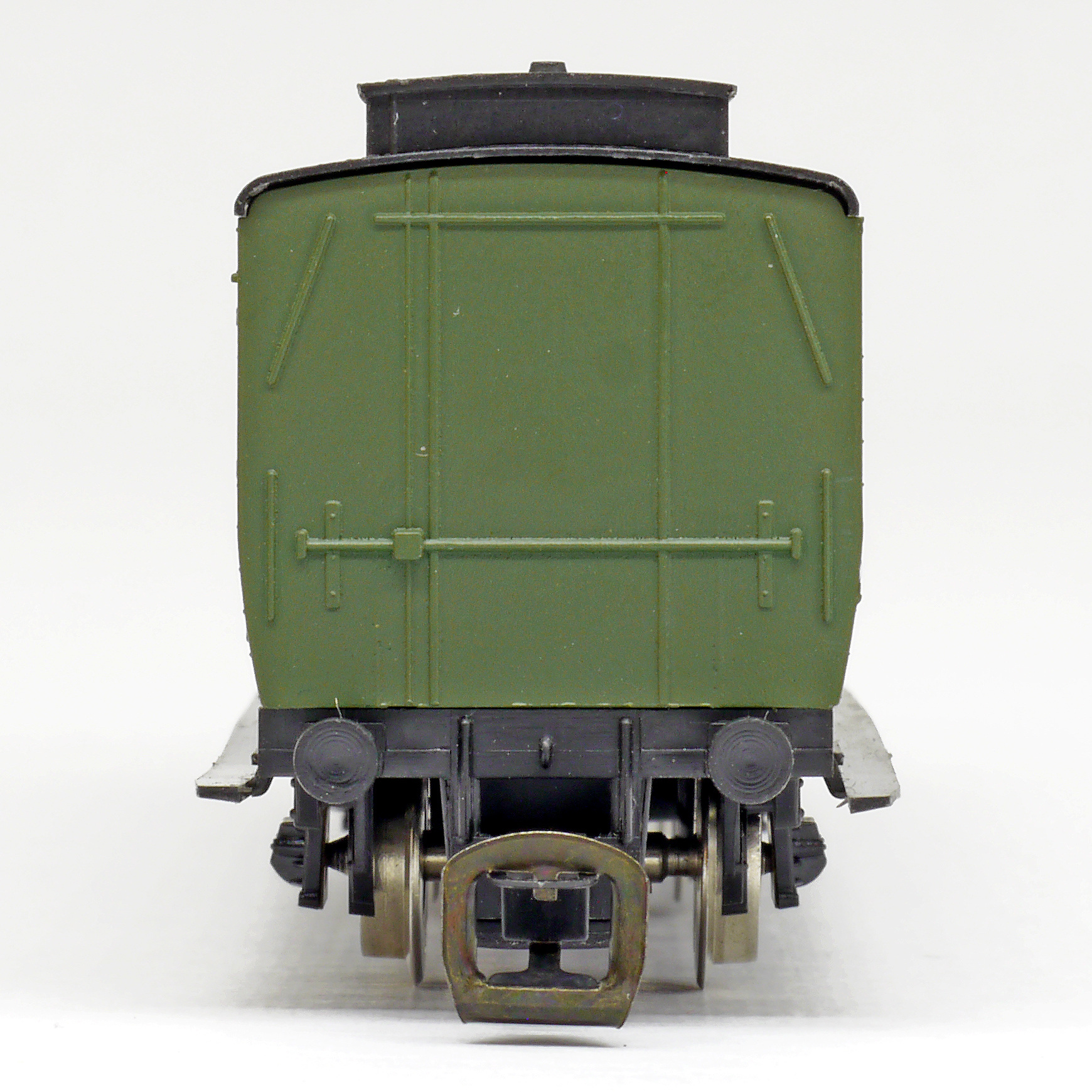 Popis   oddílový osobní vůz zelený s černou střechou a s brzdařskou budkou
