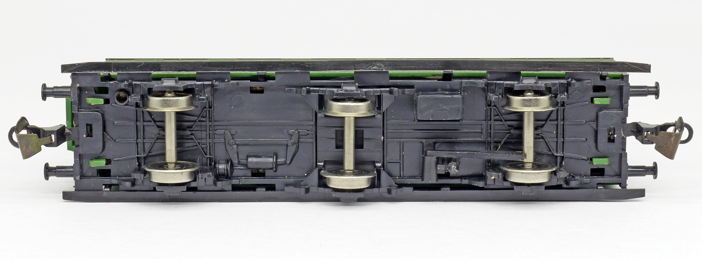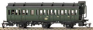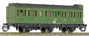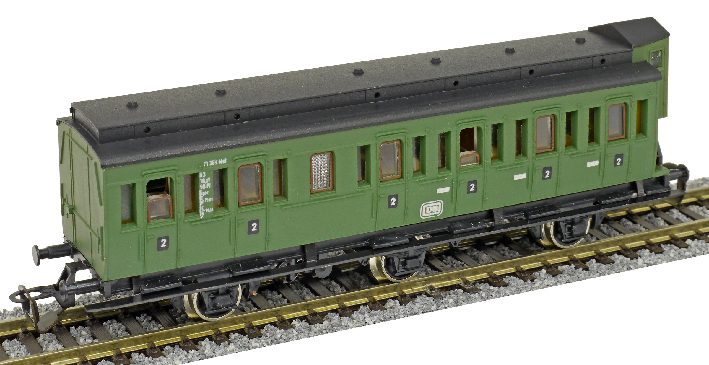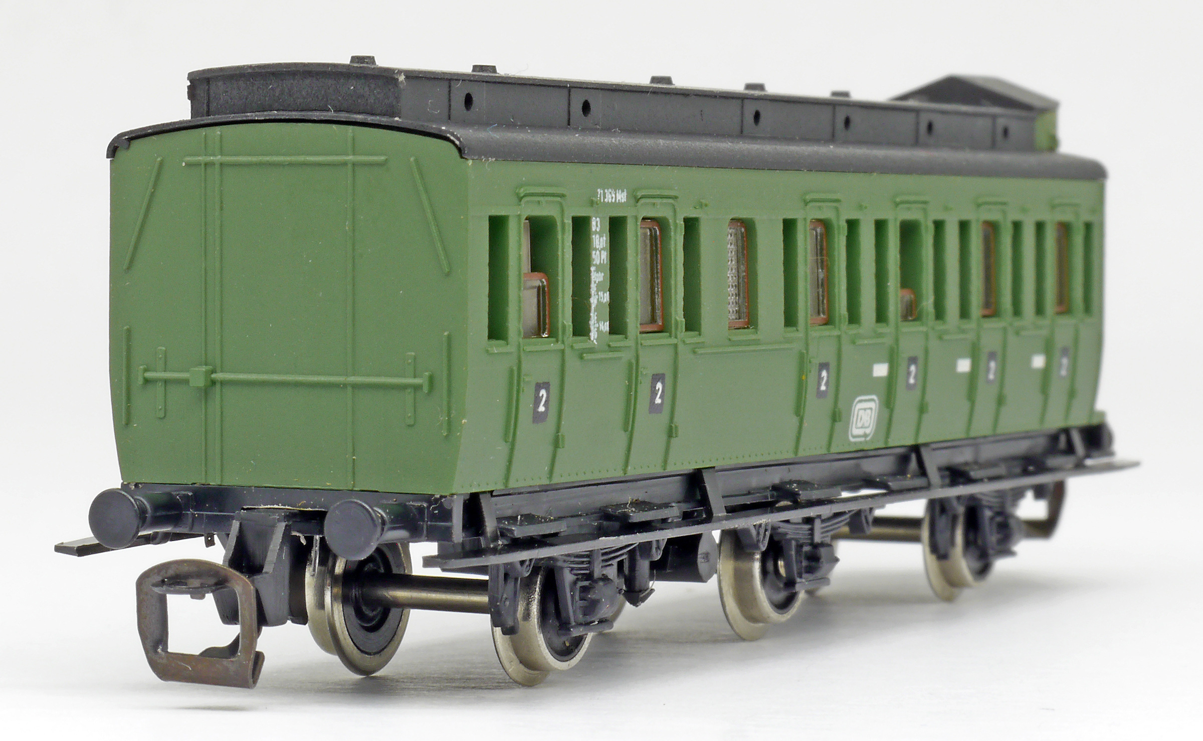 oddílový osobní vůz zelený s černou střechou s brzdařskou budkou 2. tř.