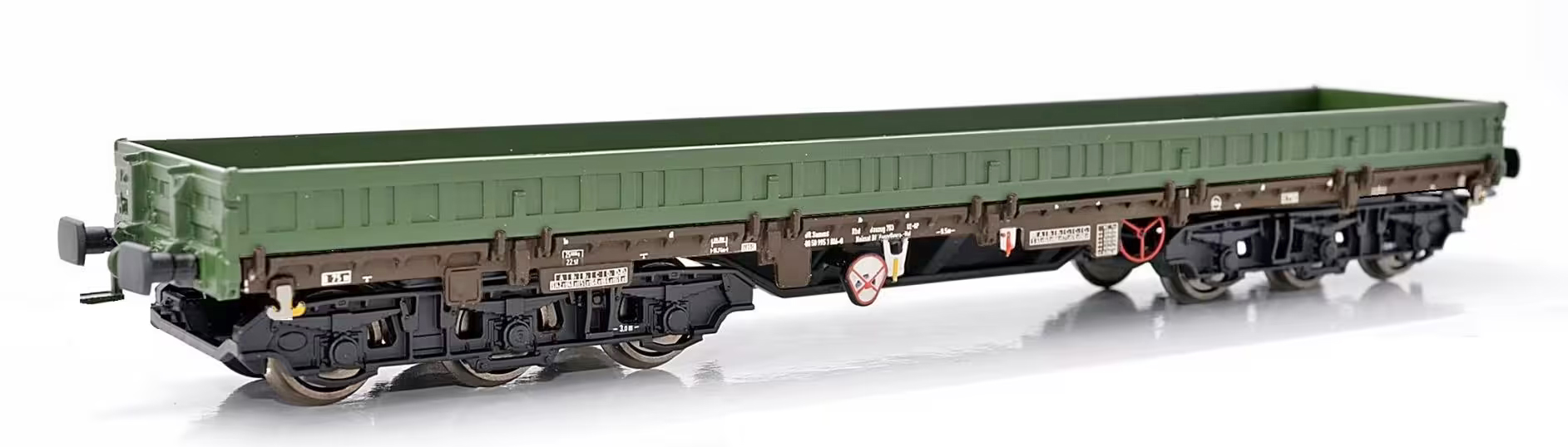 | nízkostěnný nákladní vůz zelený s černým rámem |
