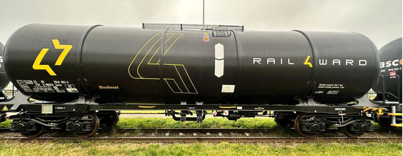 | kotlový vůz černý s logem „RAIL4WARD“ |