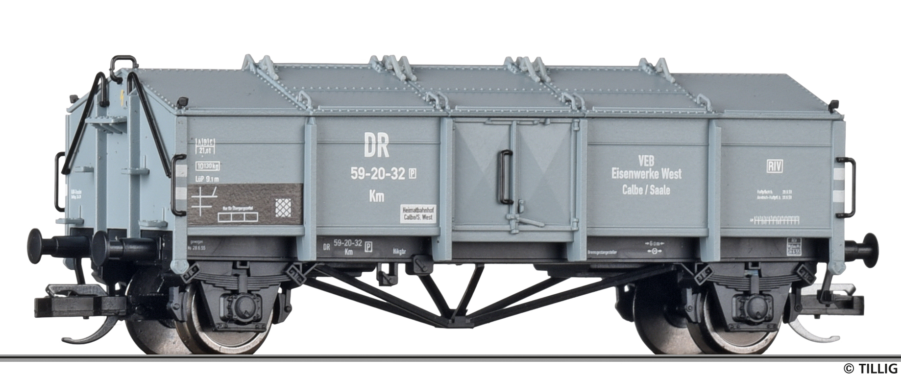 | nákladní vůz s víkovou střechou šedý „VEB Eisenwerke West“ |