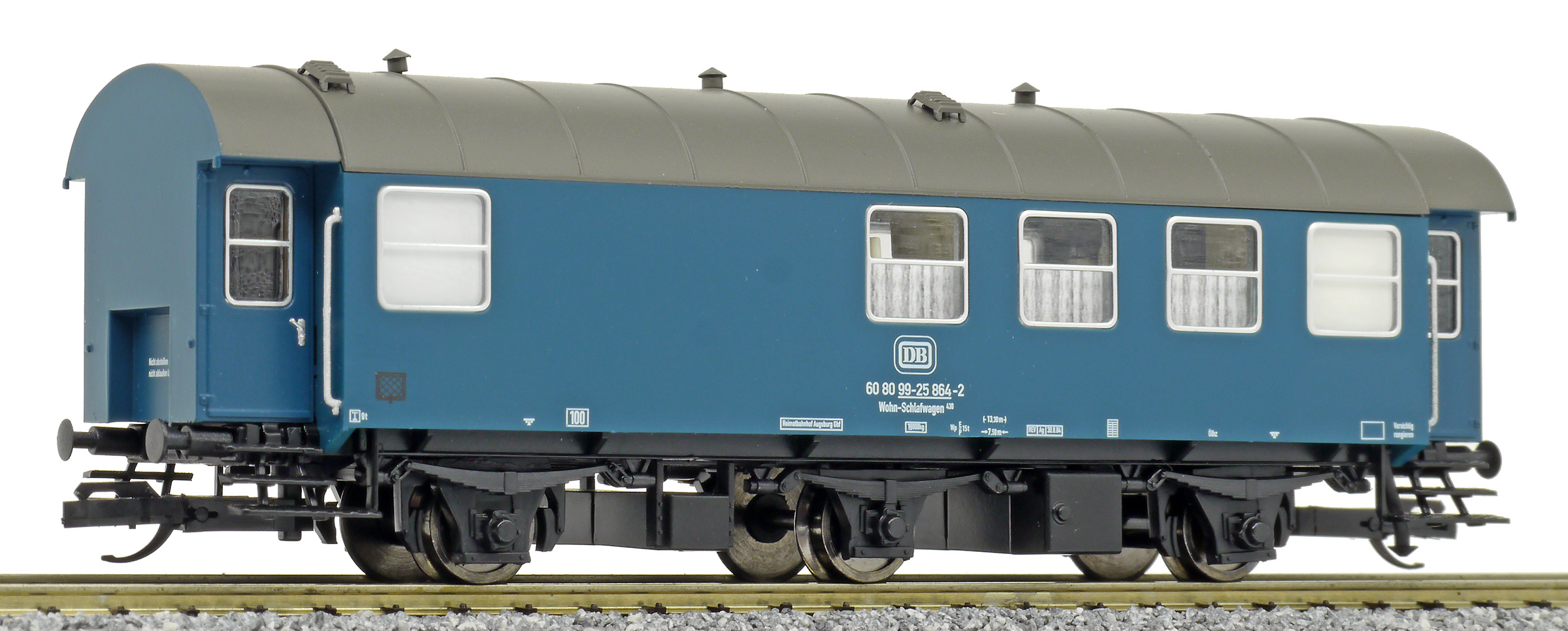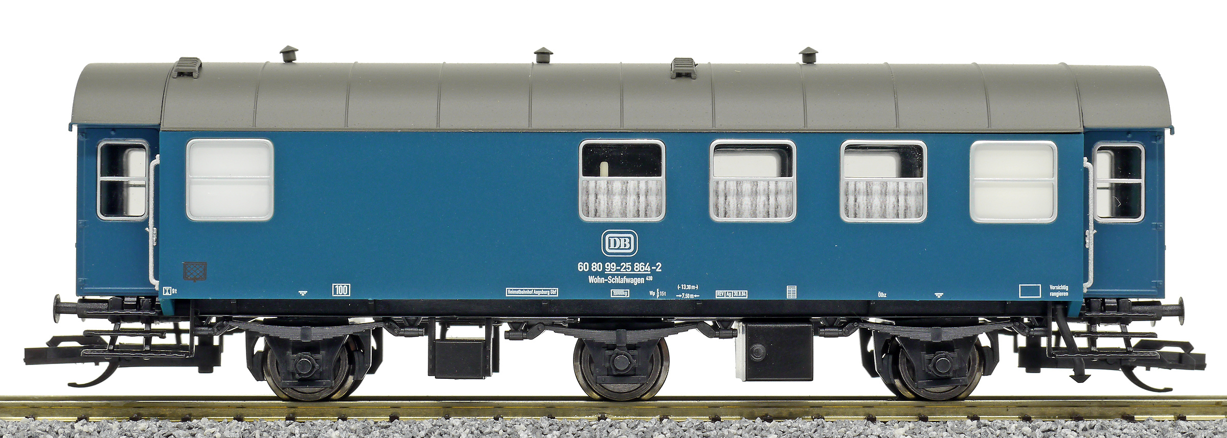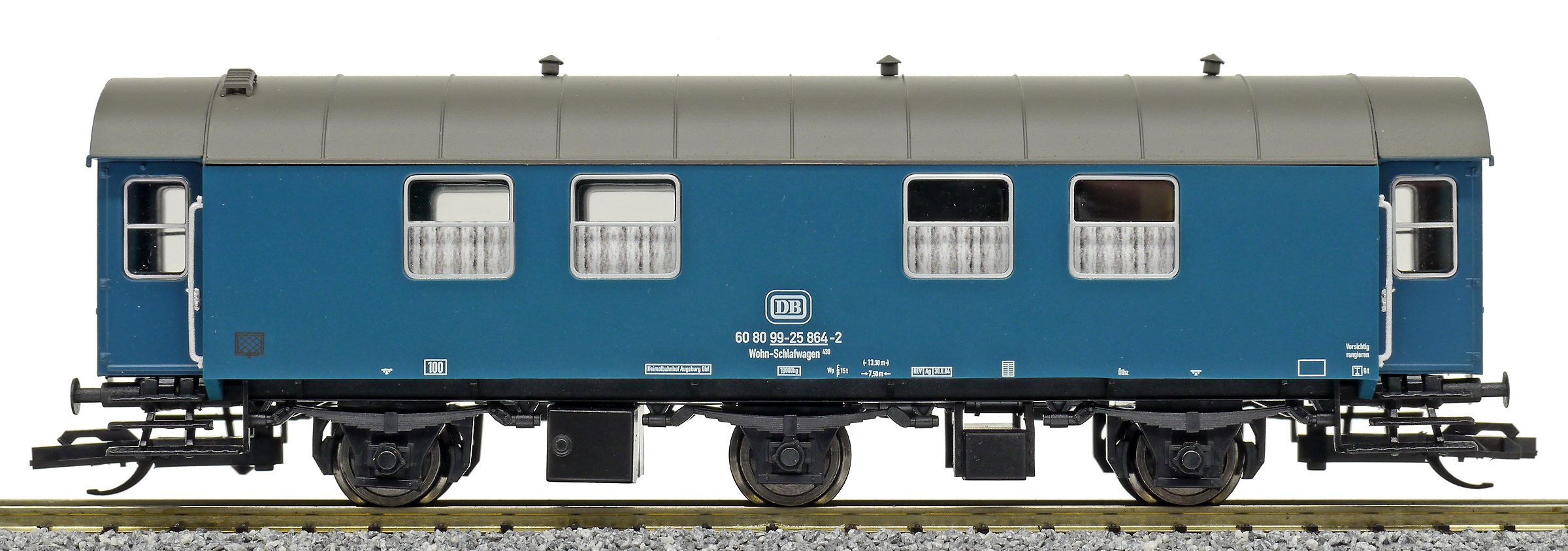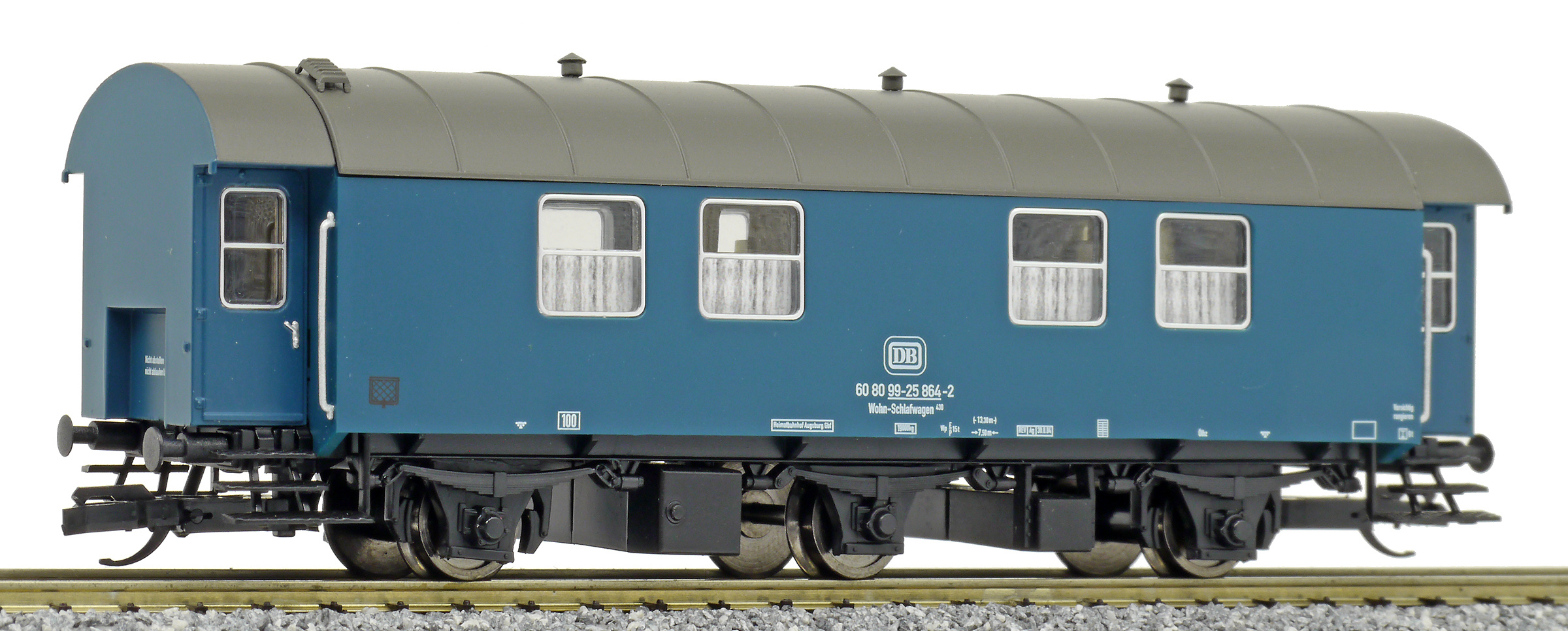| obytný vůz modrý s šedou střechou do pracovního vlaku |