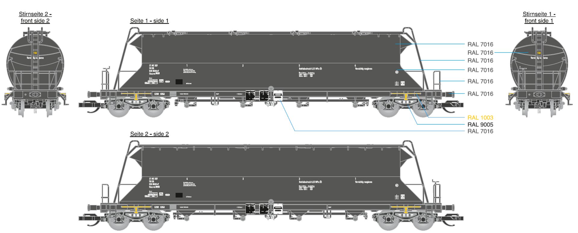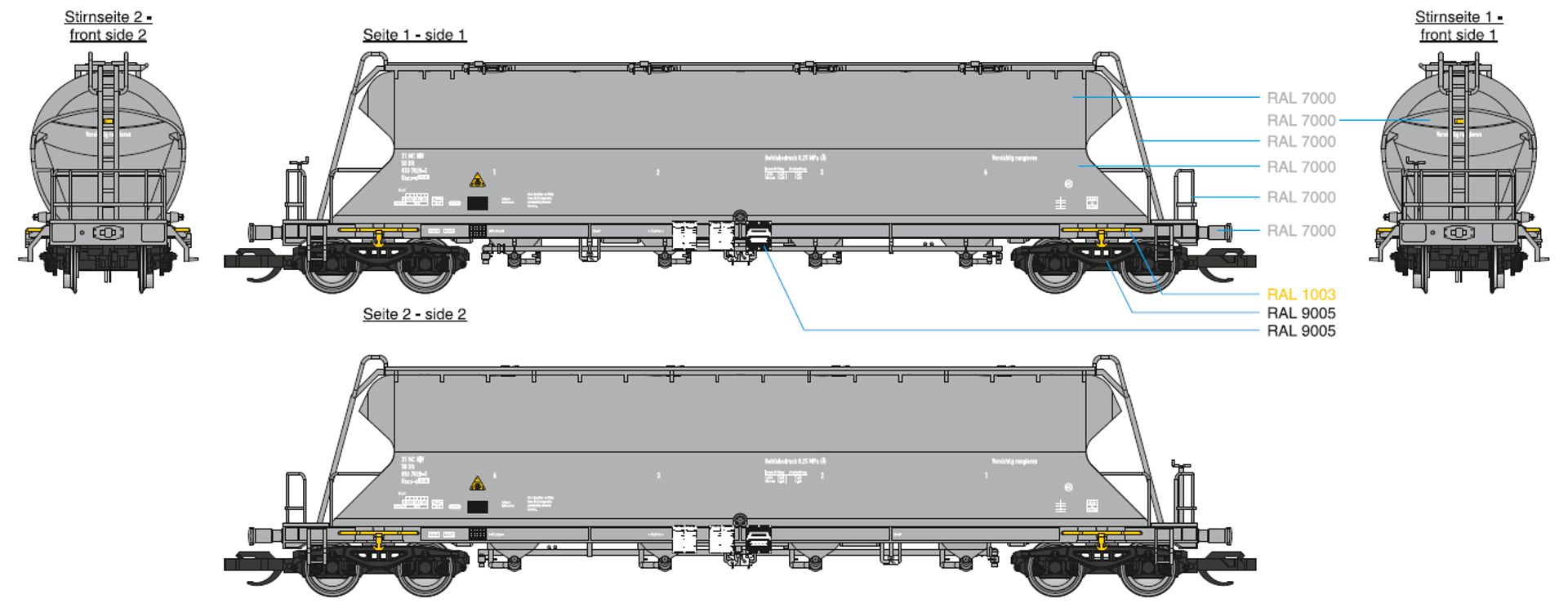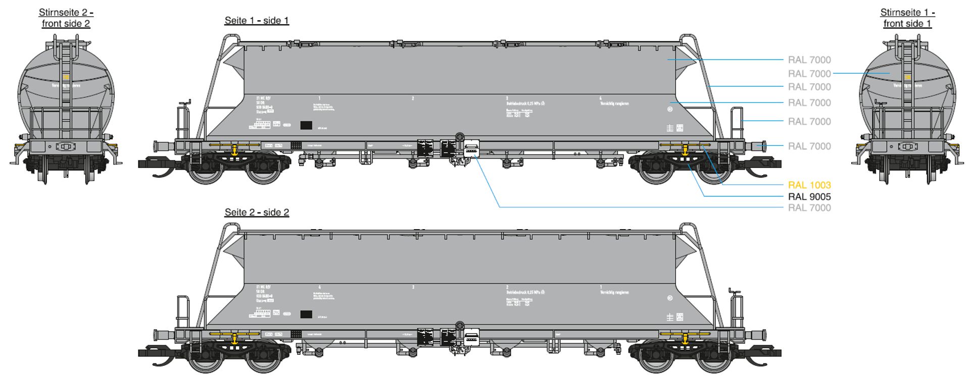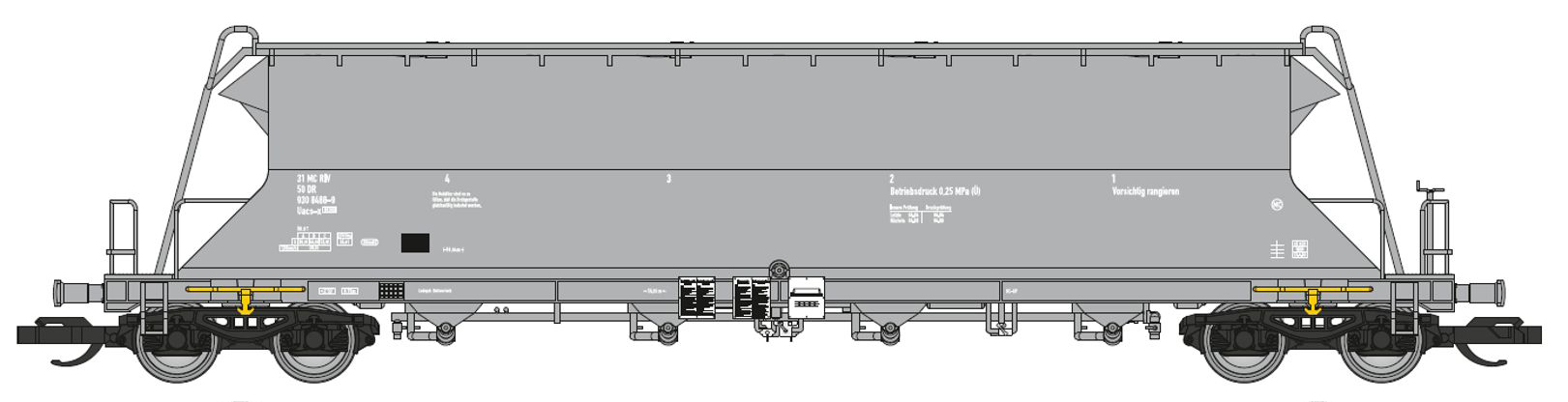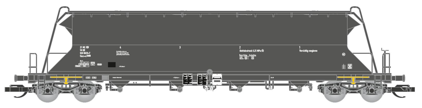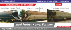 měřítko 1:120 - rozchod kolejí 12 mm kinematika krátkého spřáhla (KKK) podle normy NEM 358 477 mm - celková délka modelu přes nárazníky 3x4 - celkový počet náprav nebo rozložení náprav