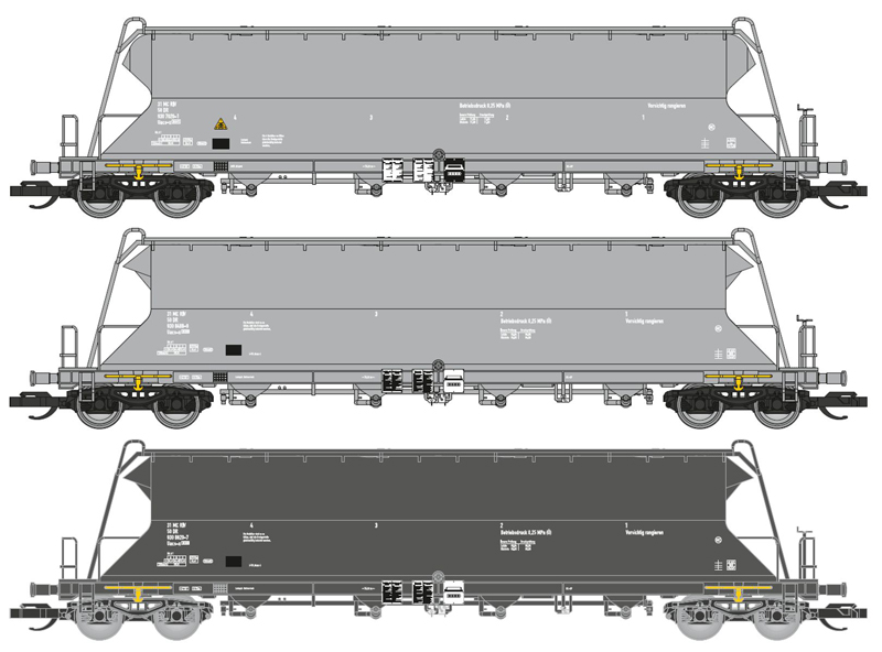 | set tří nákladních samovýsypných vozů na uhelný prach |