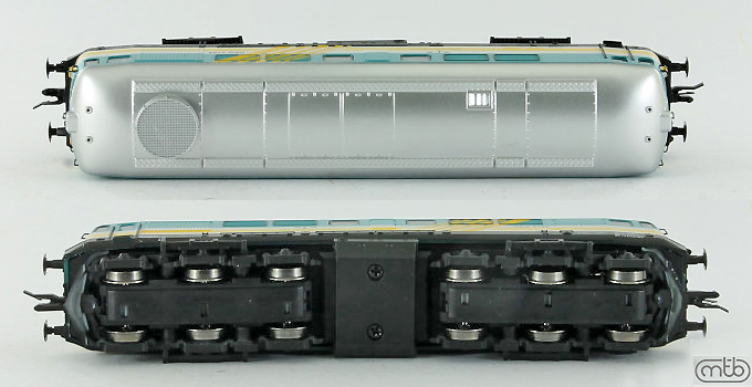 měřítko 1:120 - rozchod kolejí 12 mm osvětlení - 3 reflektory přepínatelné podle směru jízdy 6 hnaných náprav 0 bandážovaných náprav kinematika krátkého spřáhla (KKK) podle normy NEM 358 digitální rozhraní podle NEM 658 s konektorem PluX16 pojezd s kuličkovými ložisky 140 mm - celková délka modelu přes nárazníky 6 - celkový počet náprav nebo rozložení náprav 200 g - hmotnost netto - pouze model