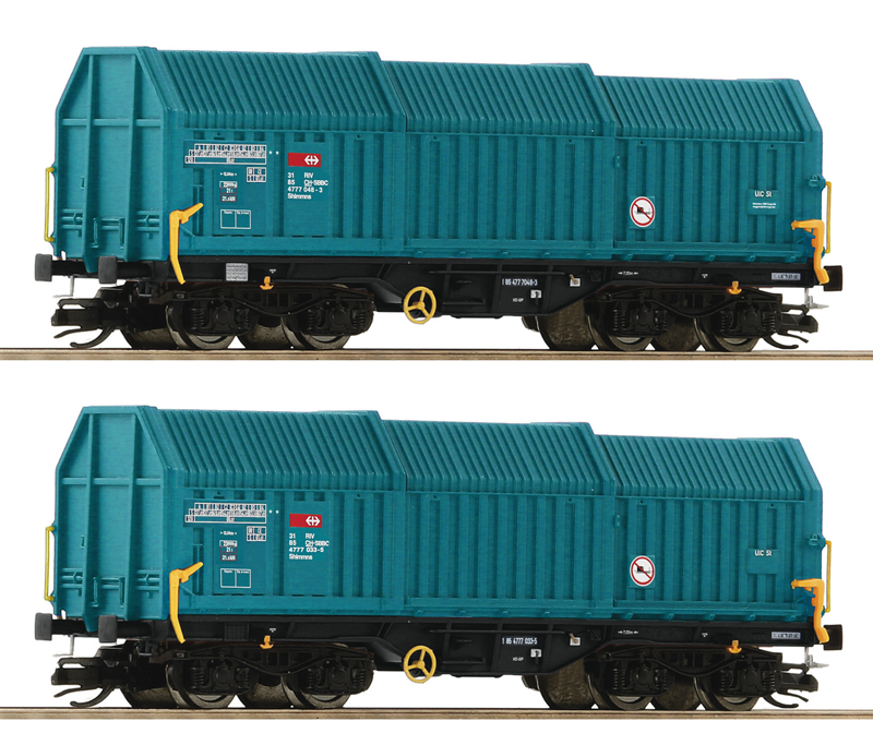 Popis   set dvou tyrkysových vozů s posuvným teleskopickým zakrytím