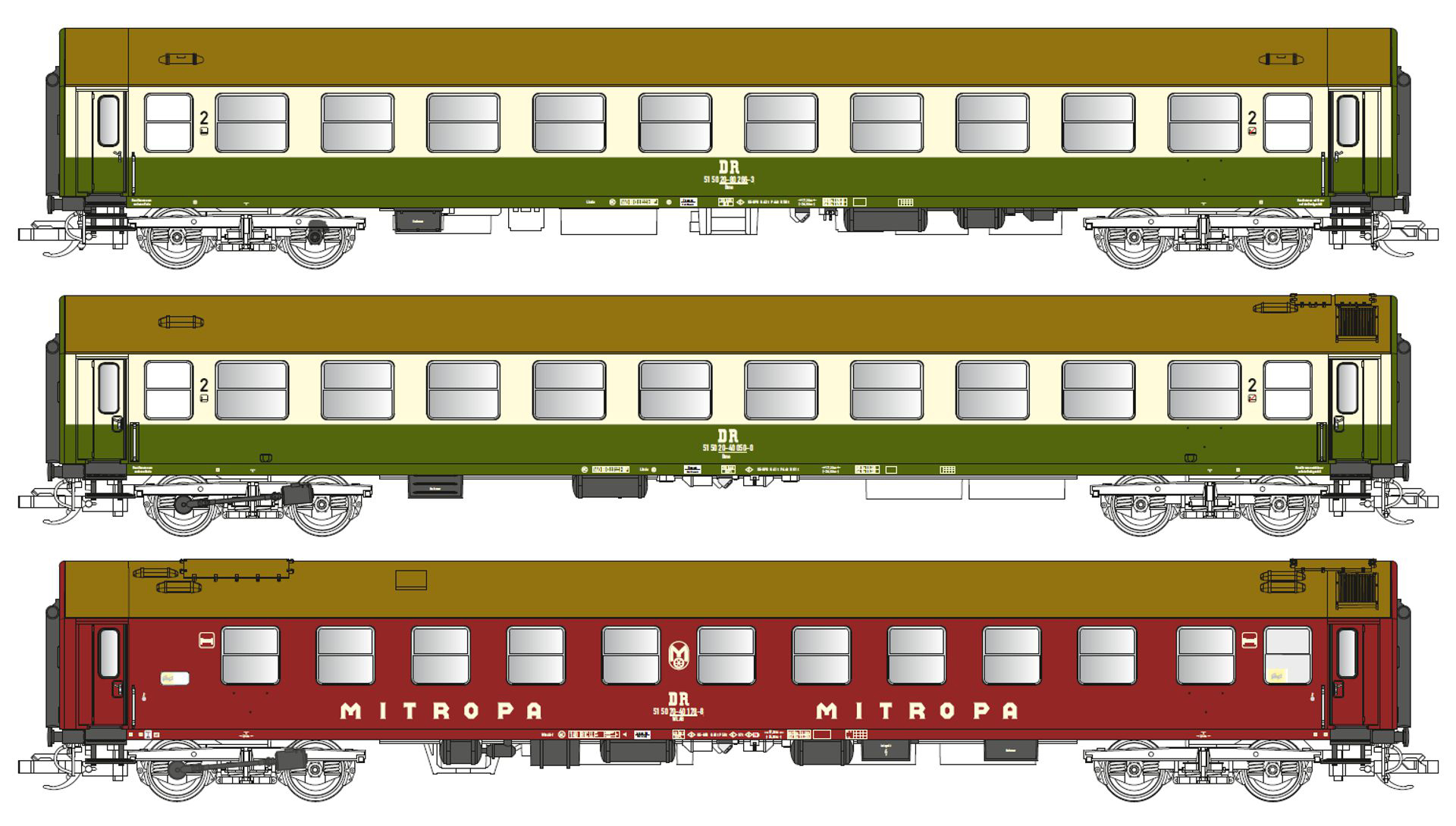 | rychlíkový vůz zelený (RAL 6002) -slonová kost (RAL 1015) s hnědou (RAL 8000) střechou 2. tř. |