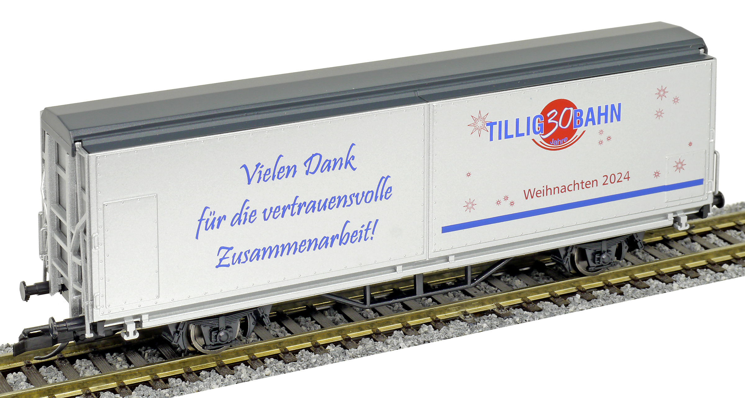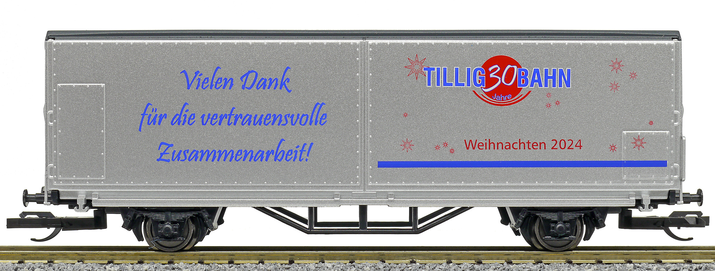 Popis   nákladní vůz s posuvnými bočnicemi stříbrný „Danke 2024“