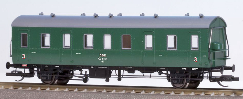 | oddílový osobní vůz zelený s šedou střechou 3. tř. |