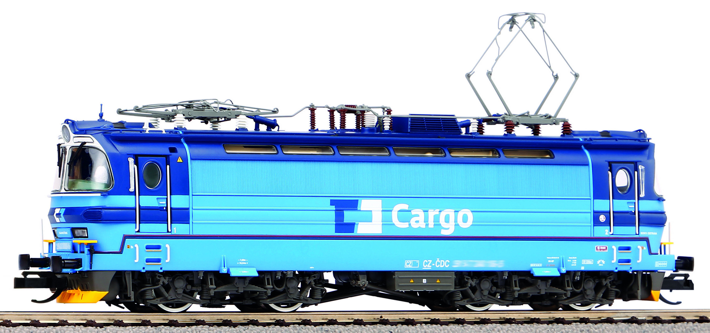 | elektrická lokomotiva v barevném schematu „ČD Cargo“ |