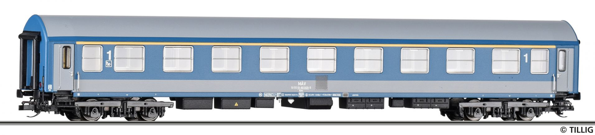 | rychlíkový vůz modrý s šedým pásem a s šedou střechou 1. tř. |