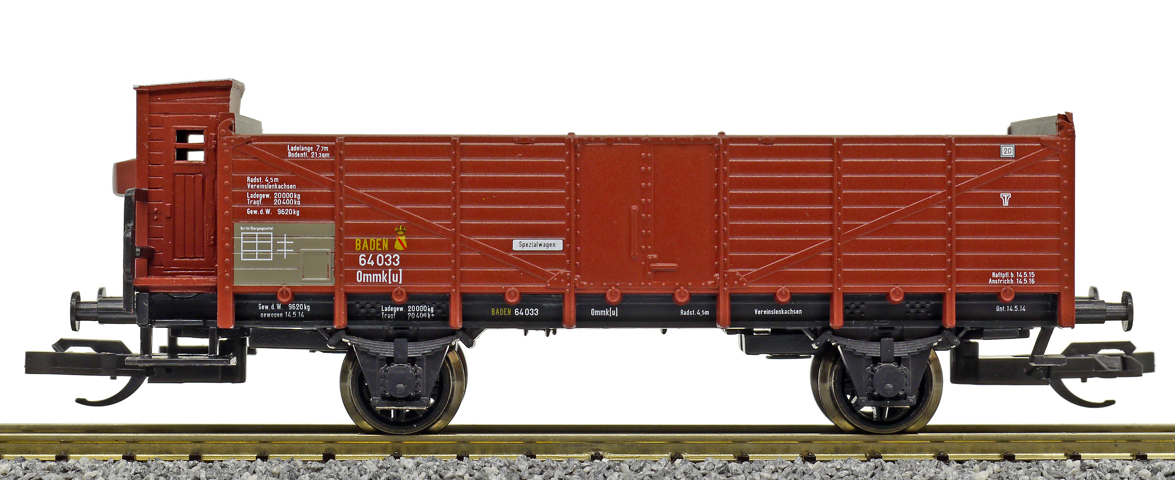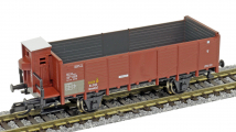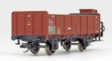 | otevřený nákladní vůz červenohnědý s brzdařskou budkou |