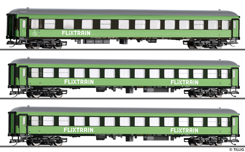 | set tří rychlíkových vozů v barevném schematu „Flixtrain“, SET 1 |