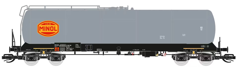 | kotlový vůz na lehké oleje šedý s podélnou lávkou a s brzdařskou plošinou „MINOL“ |
