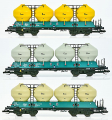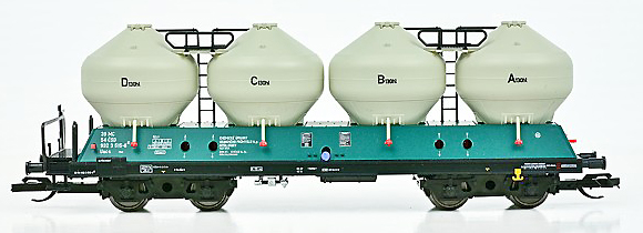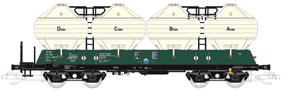 | nákladní samovýsypný vůz zelený se krémovými nádobami |
