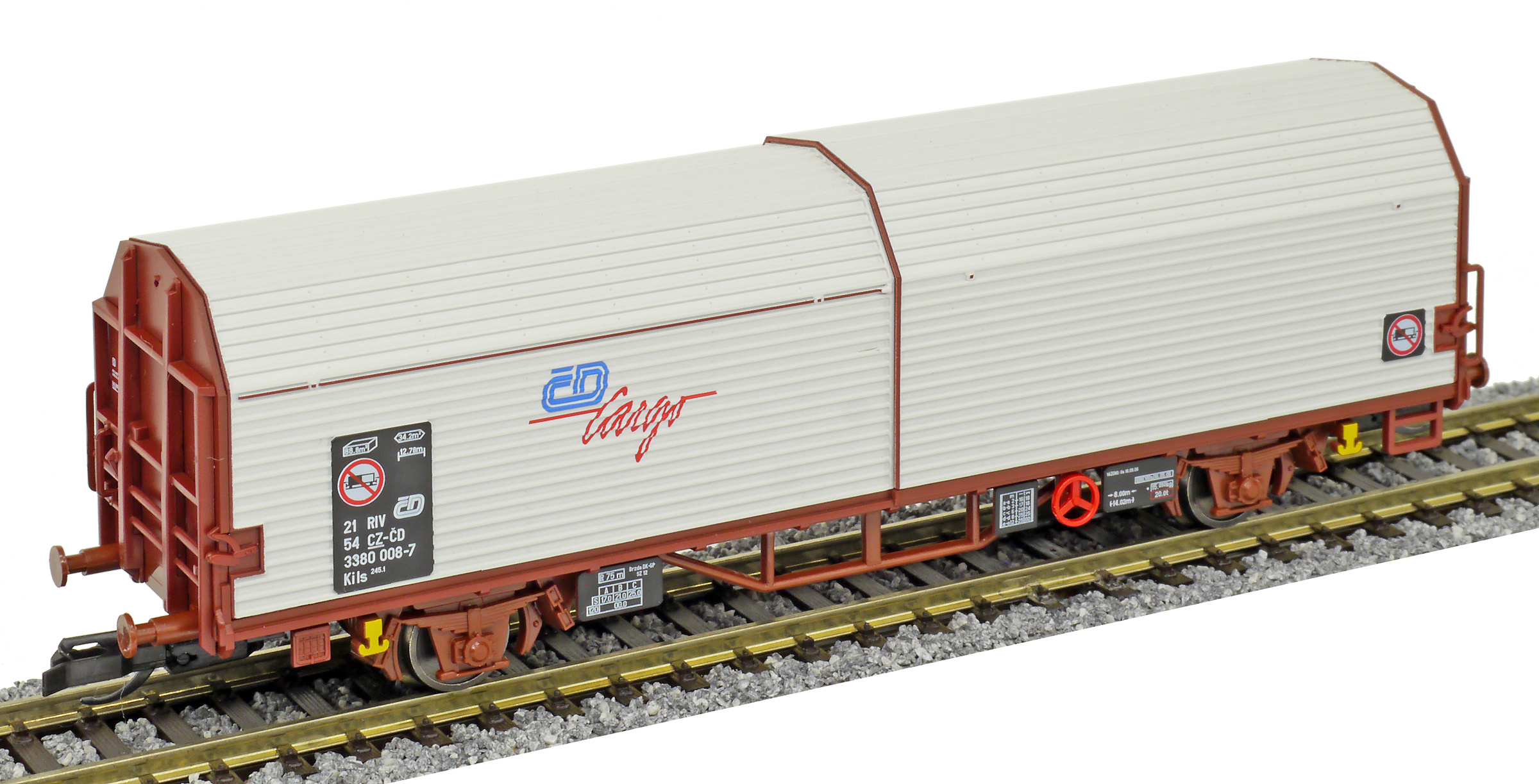 měřítko 1:120 - rozchod kolejí 12 mm kinematika krátkého spřáhla (KKK) podle normy NEM 358 117 mm - celková délka modelu přes nárazníky