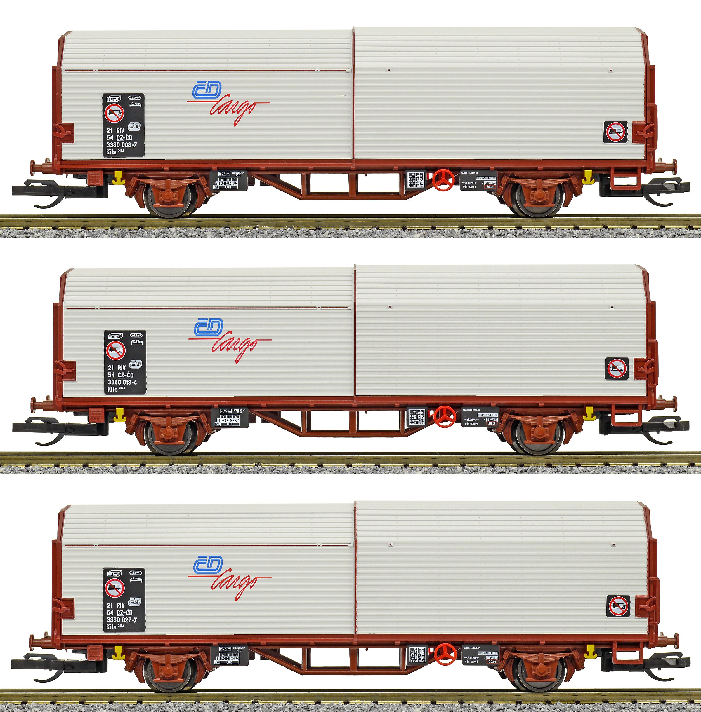 | set tří nákladních vozů s odsuvnými stěnami |